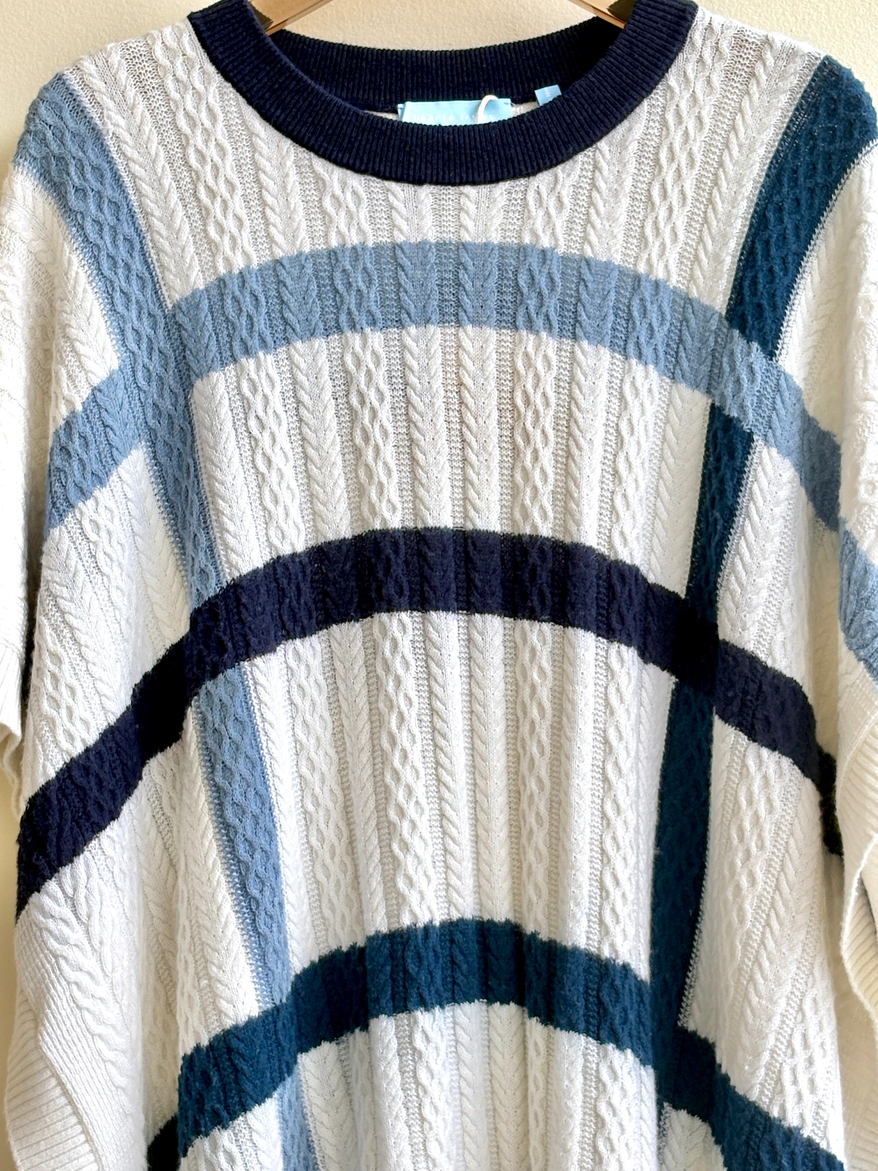- Knit Sweater Vest White & Blue Stripe