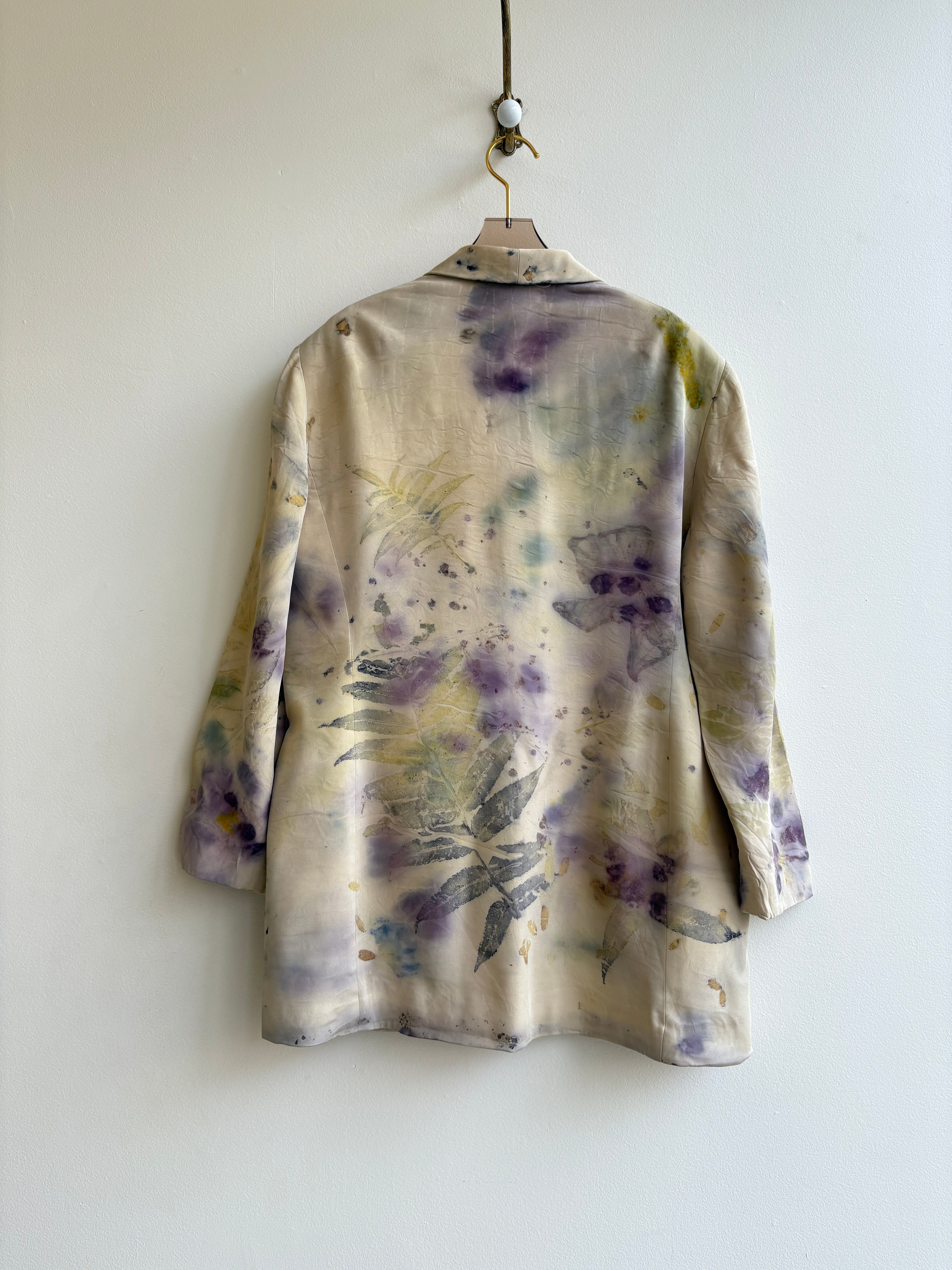 3 Button-Up Front Silk Cream & Purple Blazer (Reworked)
