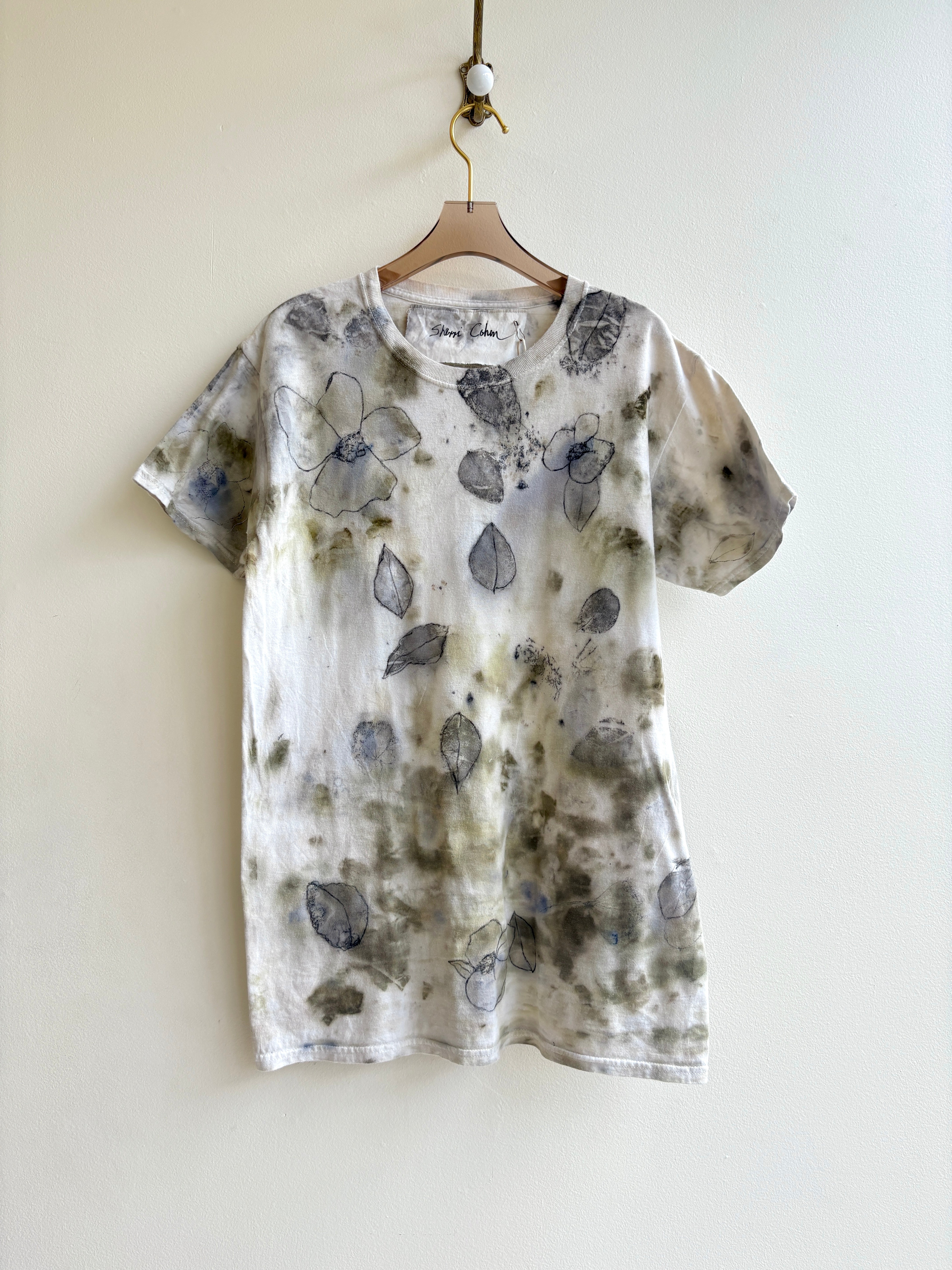 Eco Printed & Hand Drawn Cotton Tee Shirt (Reworked)
