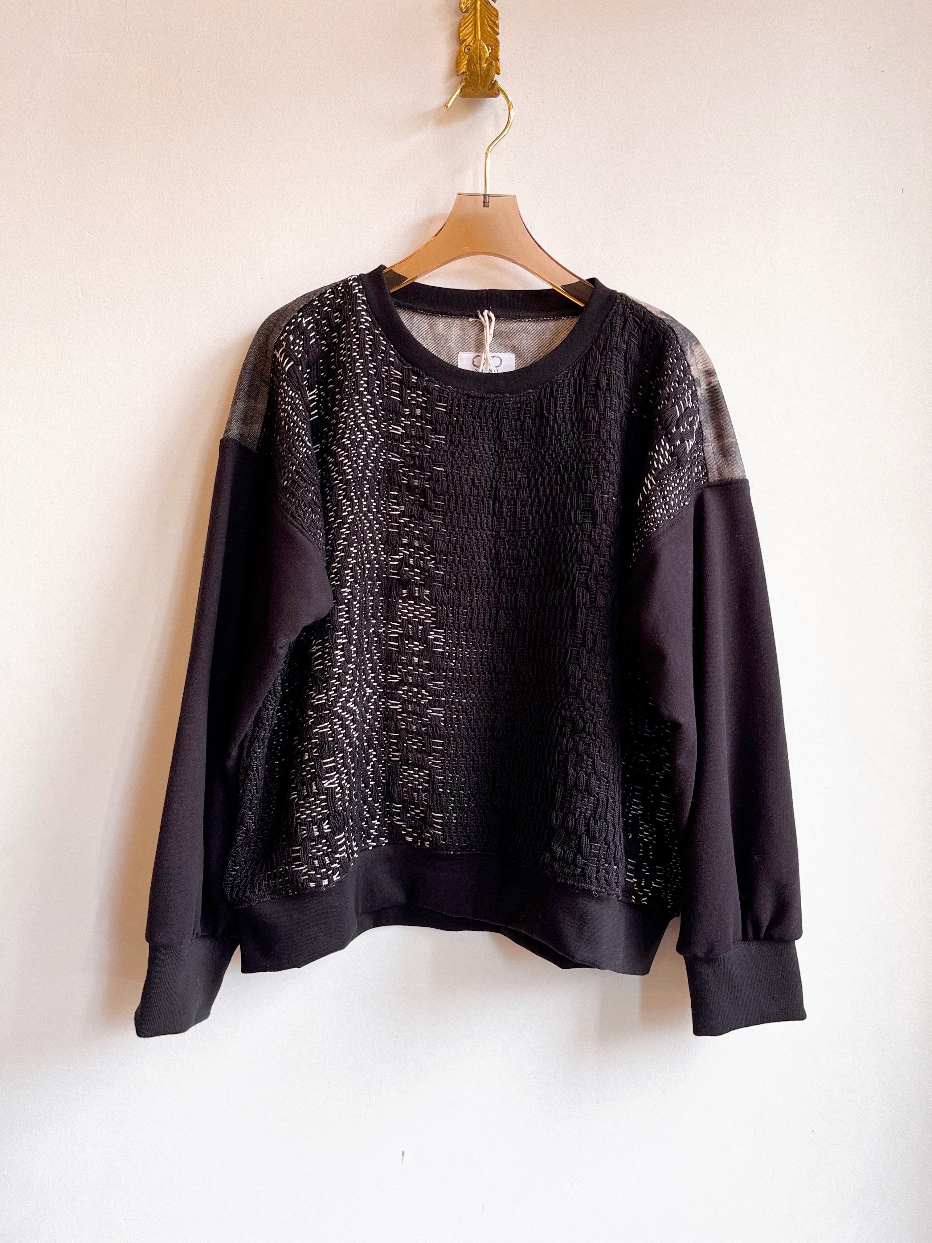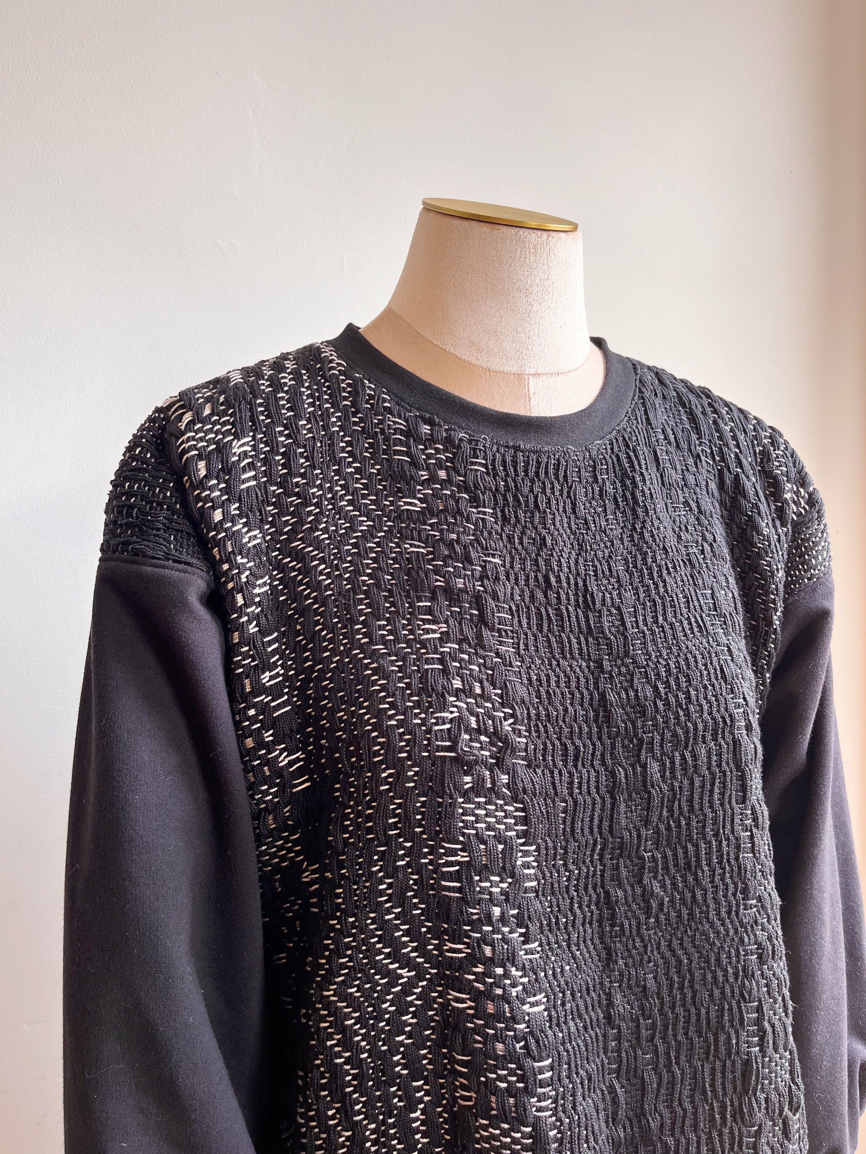 Handwoven Haze Black Pullover w/ Acid Wash Denim Back