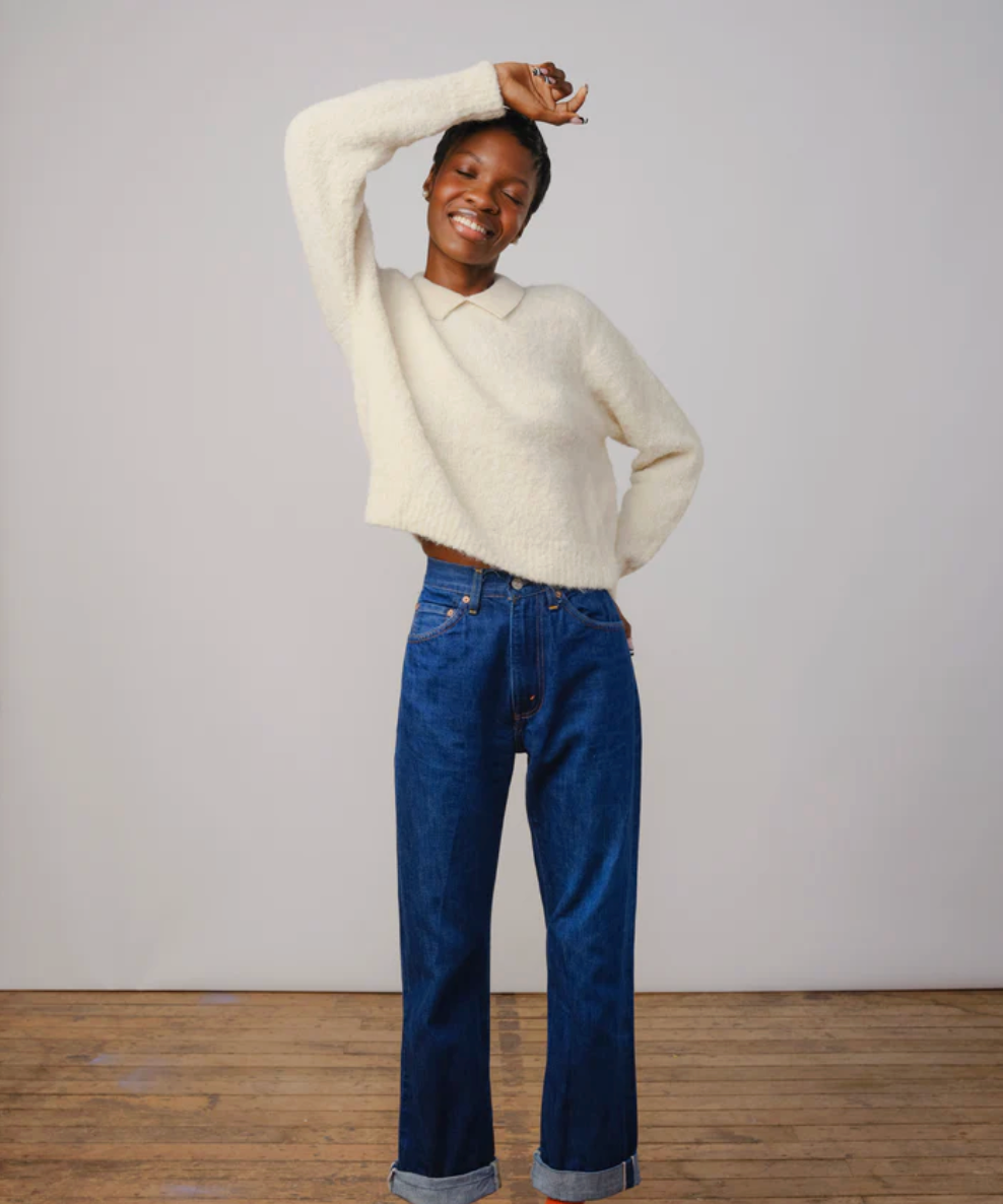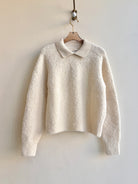 A sculptural take on softness, the bouclé collared long sleeve polo by The Endery redefines cozy with its plush, nubby texture and elevated polo-inspired neckline. Crafted from a blend rich in alpaca, this style balances structure with comfort; airy yet substantial, refined yet easy.