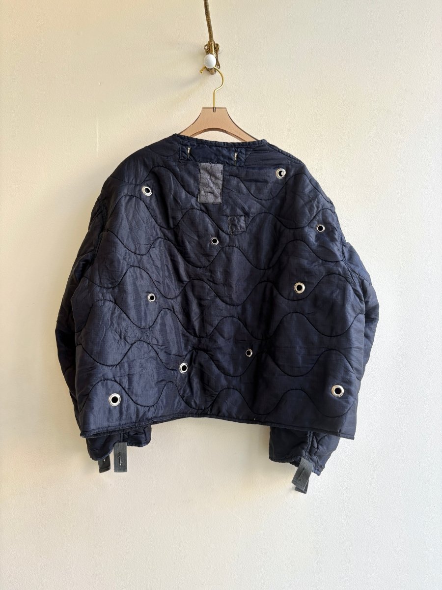 Navy Blue Army Liner Quilted Coat w/ Grommets & Single Silver Clasp (Reworked)