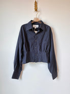 The Kevin Top | Navy w/ Pinstripes Button Down Top w/ Gathered Waist (Reworked)
