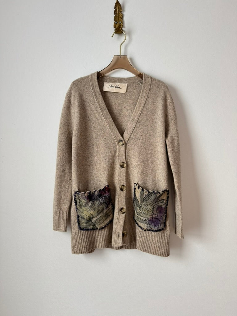 Button Down Cardigan w/ Eco-Printed Patch Pockets (Reworked)