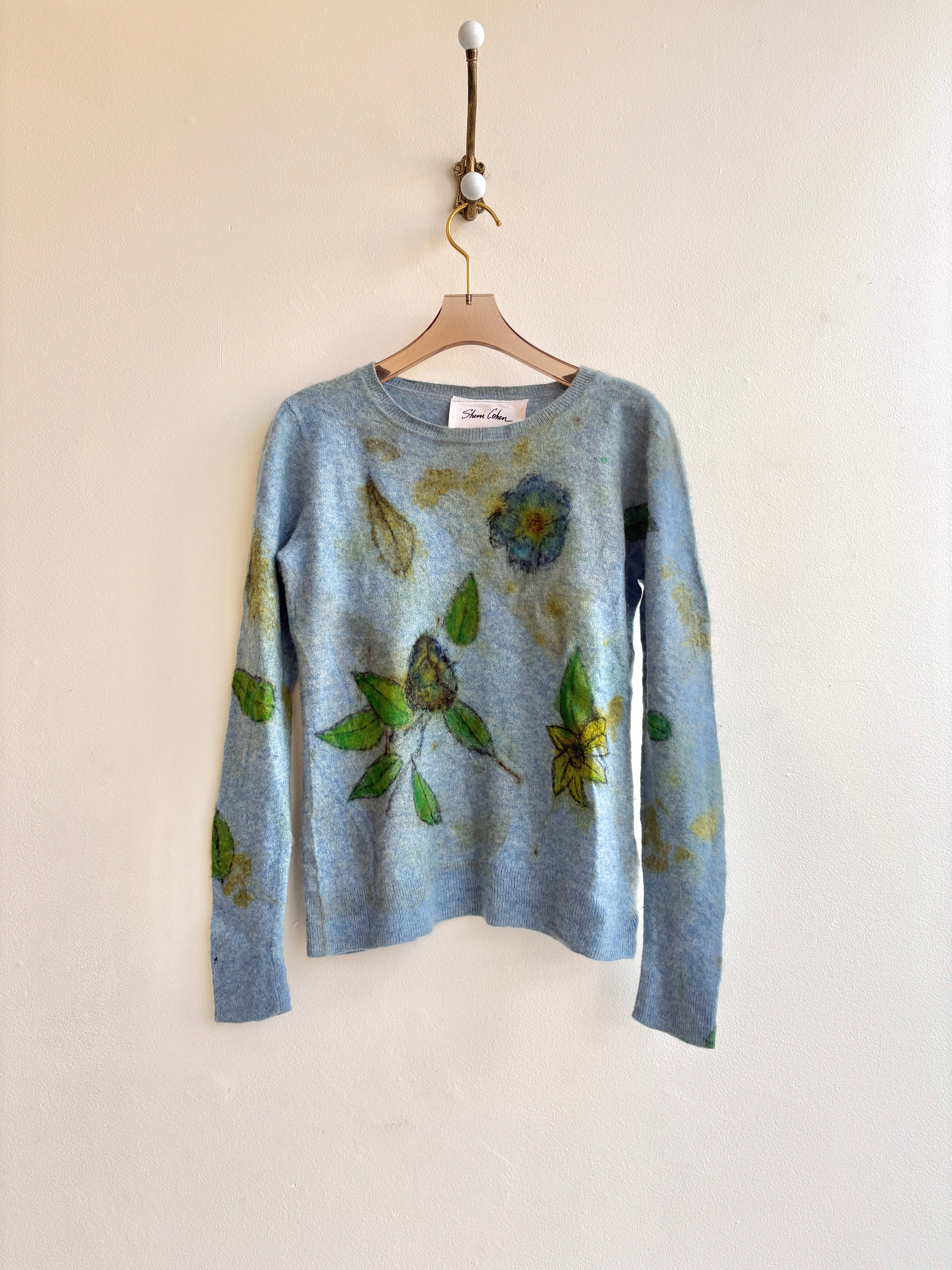 Robin Egg Blue Eco Printed Sweater (Reworked)