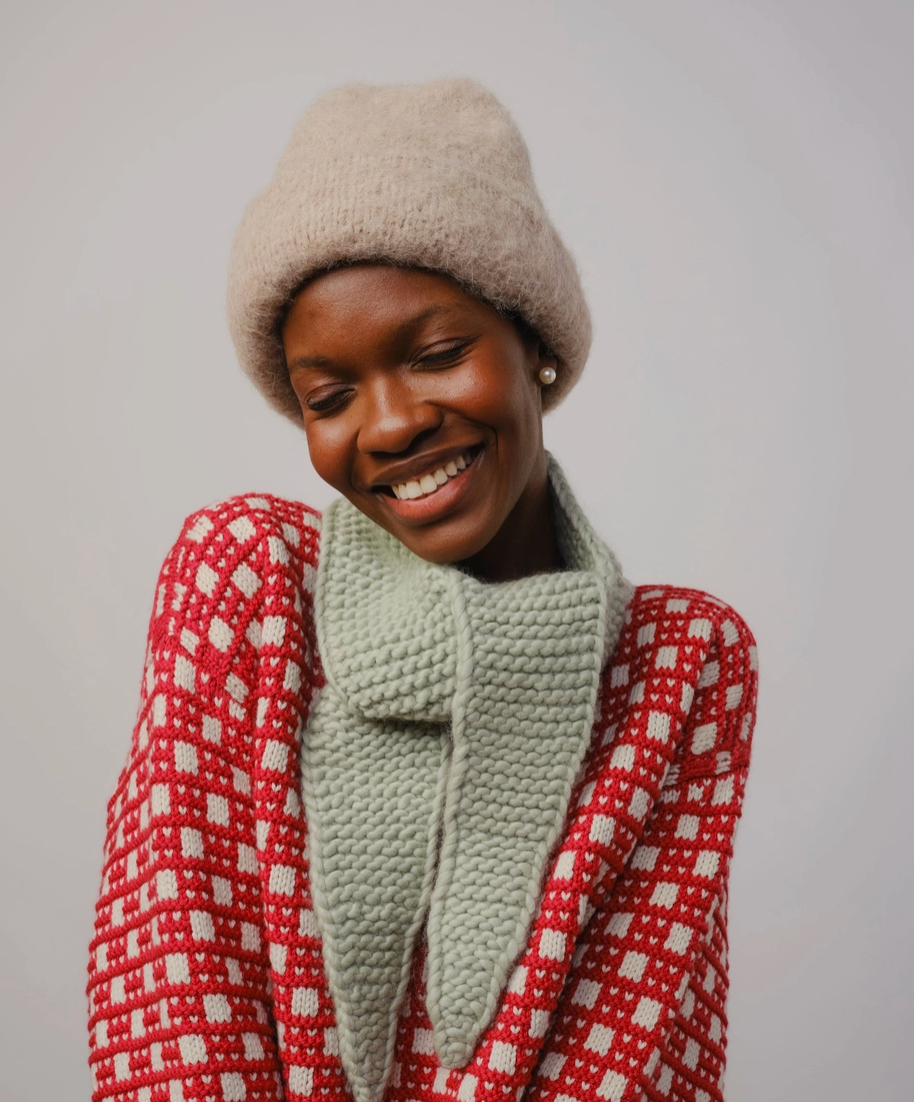 As soft as it looks, maybe softer. The Judy Cloud Hat is hand-knit from baby alpaca, offering an irresistibly plush feel with lightweight warmth. Its lofty texture and gently structured shape give it a sculptural, cloud-like quality.