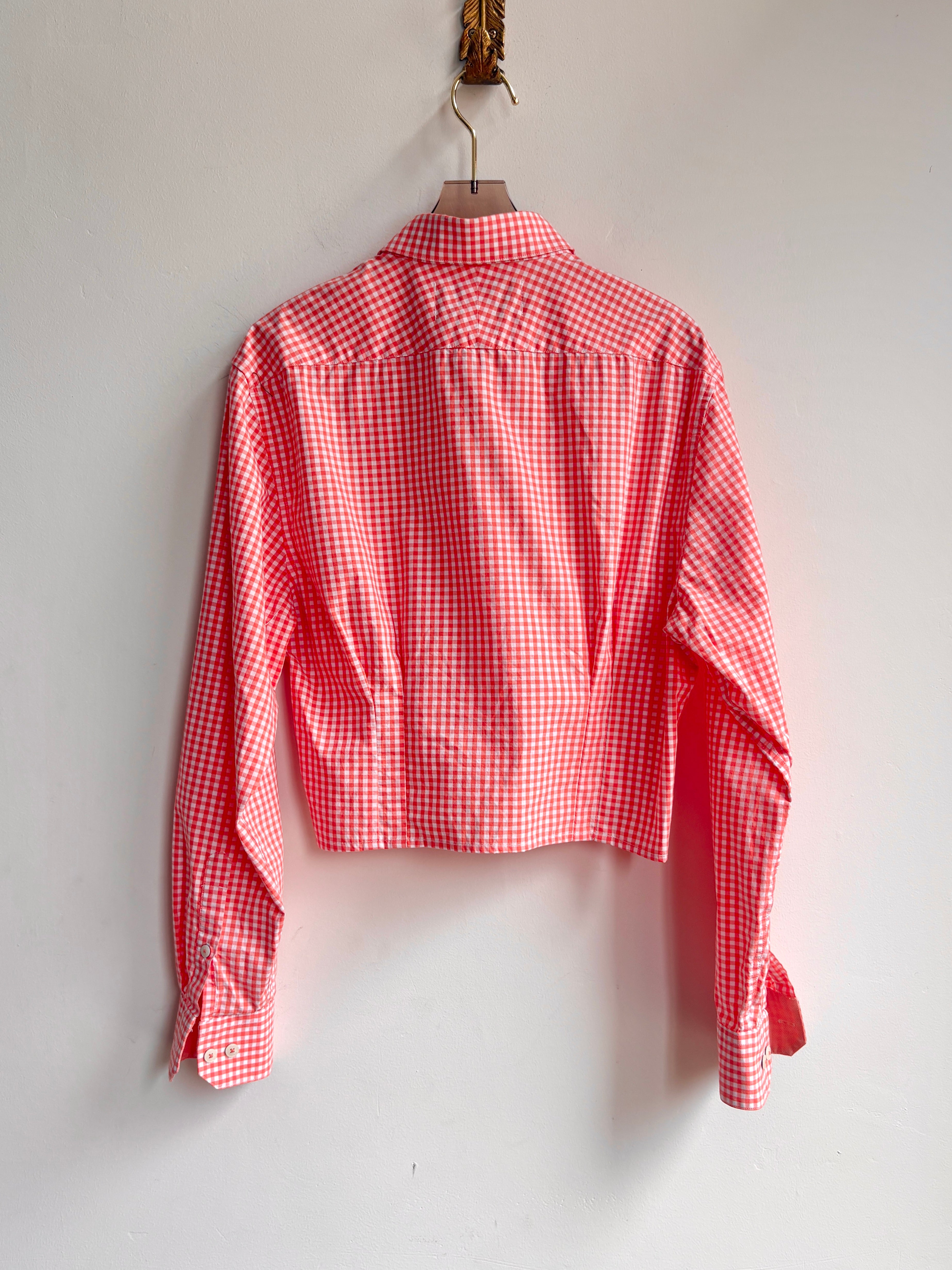 The Kevin Top | Coral Gingham Button Down w/ Gathered Waist (Reworked)