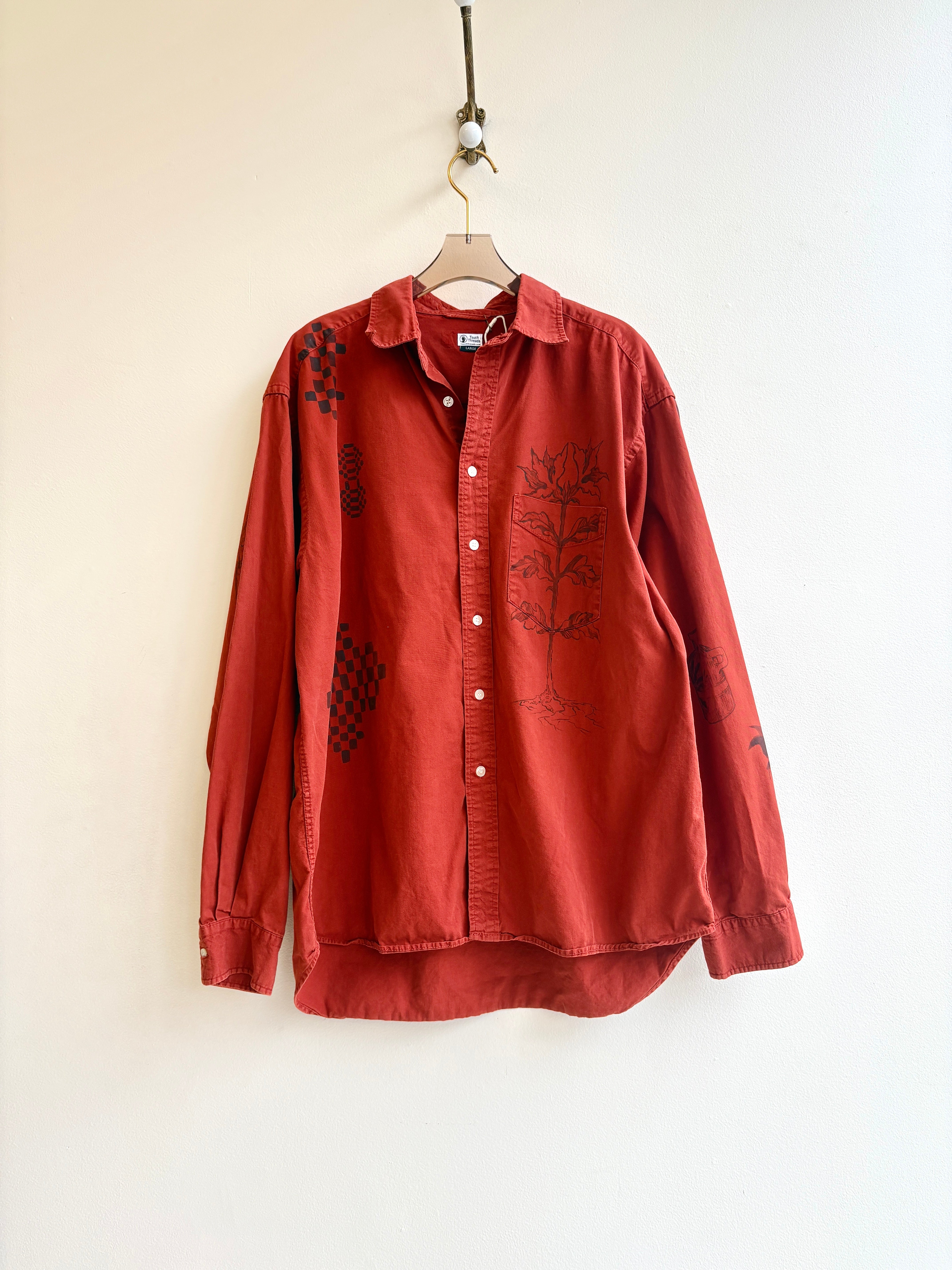 Moth Snow is a folk-naturalist painter in the Hudson Valley who turns vintage clothing into wearable art for their line Touch Threads. Moth sources, sews and dyes natural-fiber pieces and hand paints illustrations inspired by American textile history, mystical naturalism and local ecosystems.