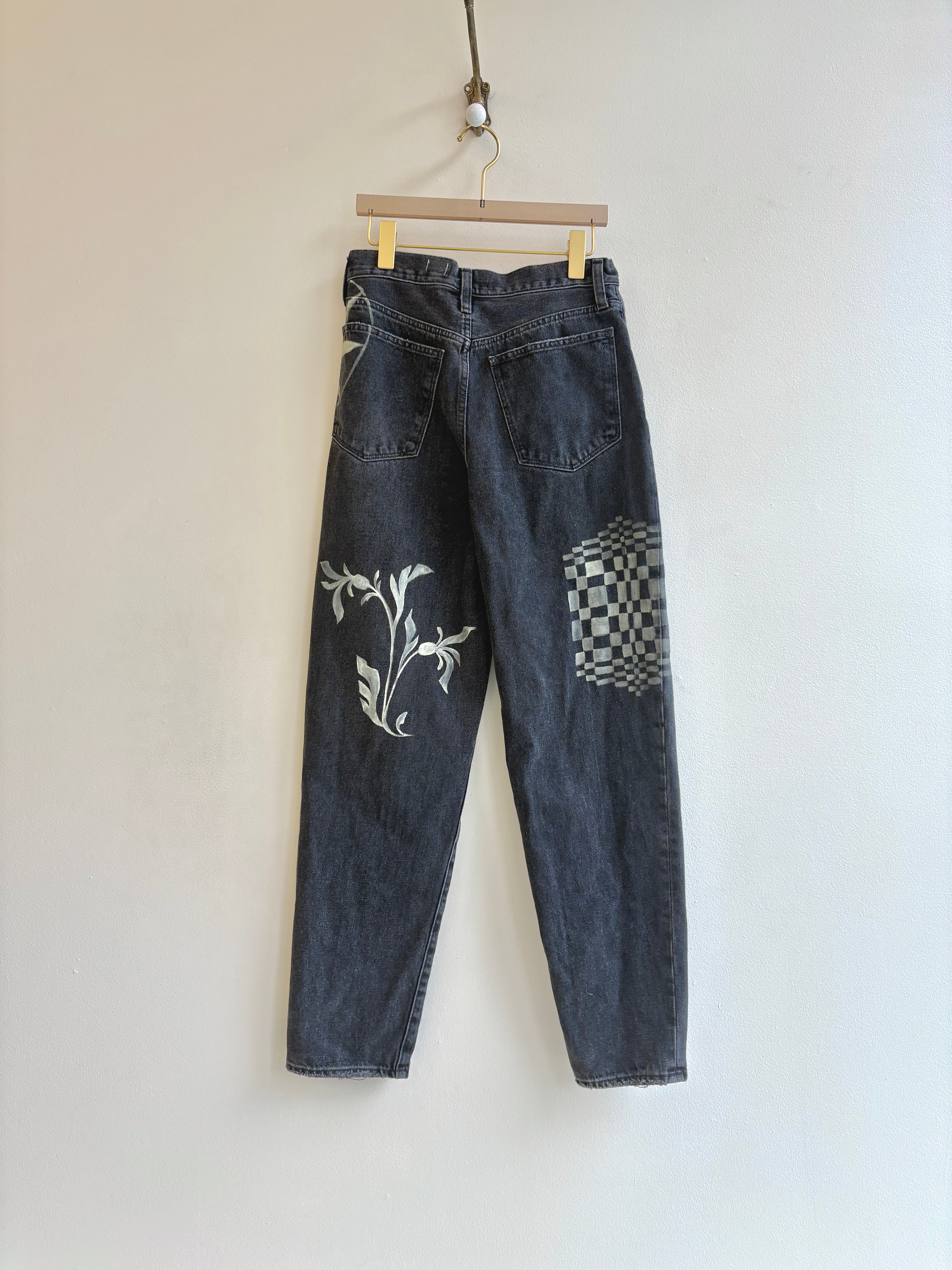 Quilt and Folk Motif Black Jeans | Hand Painted (Reworked)
