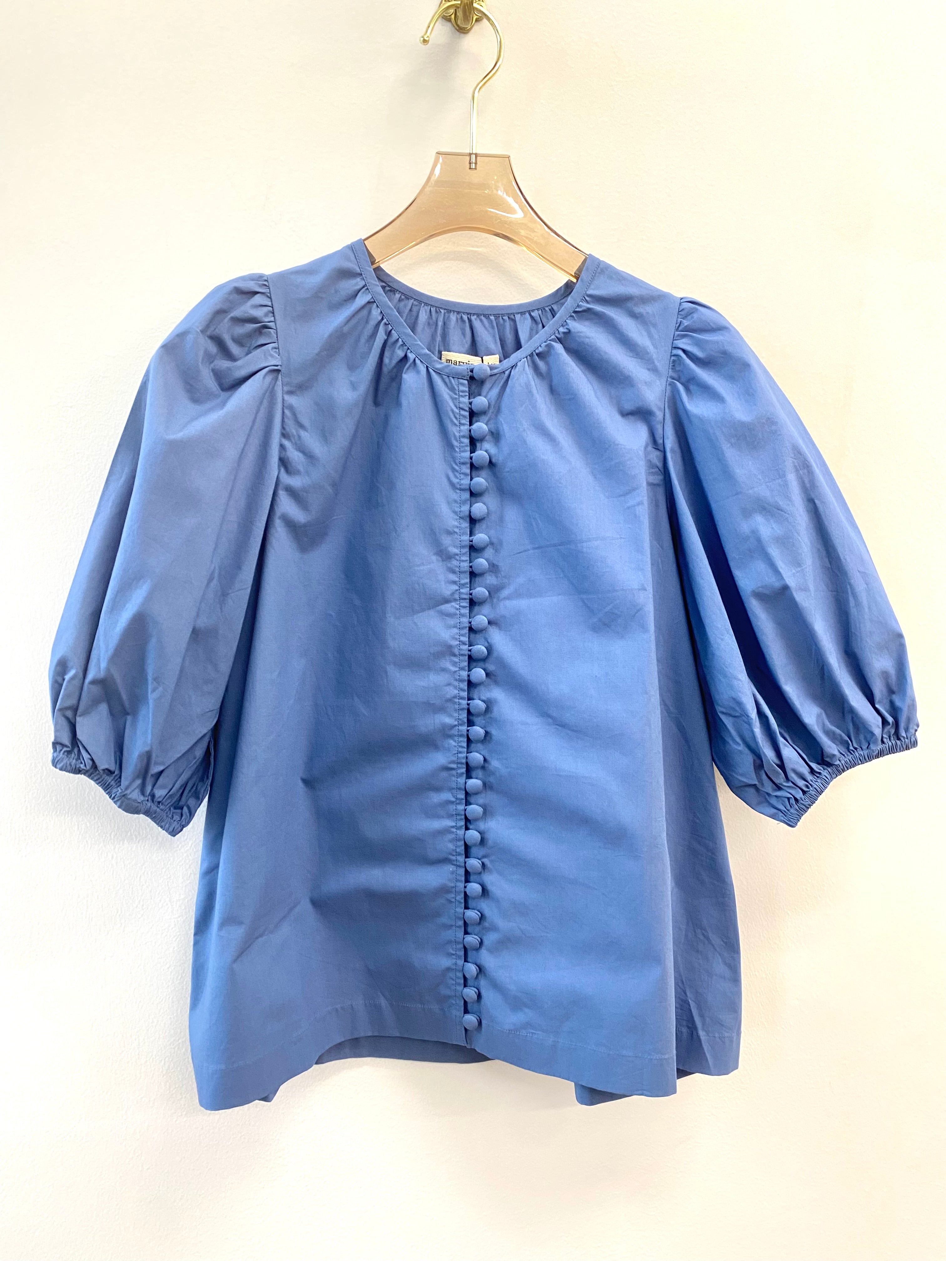This elegant Blue Button Down Edith Blouse is designed by Marvin Ruby, a woman owned business. Made with high-quality cotton, the blouse features a classic blue color and functional button downs. Perfect for any occasion, this blouse is a stylish and ethical choice for your wardrobe.