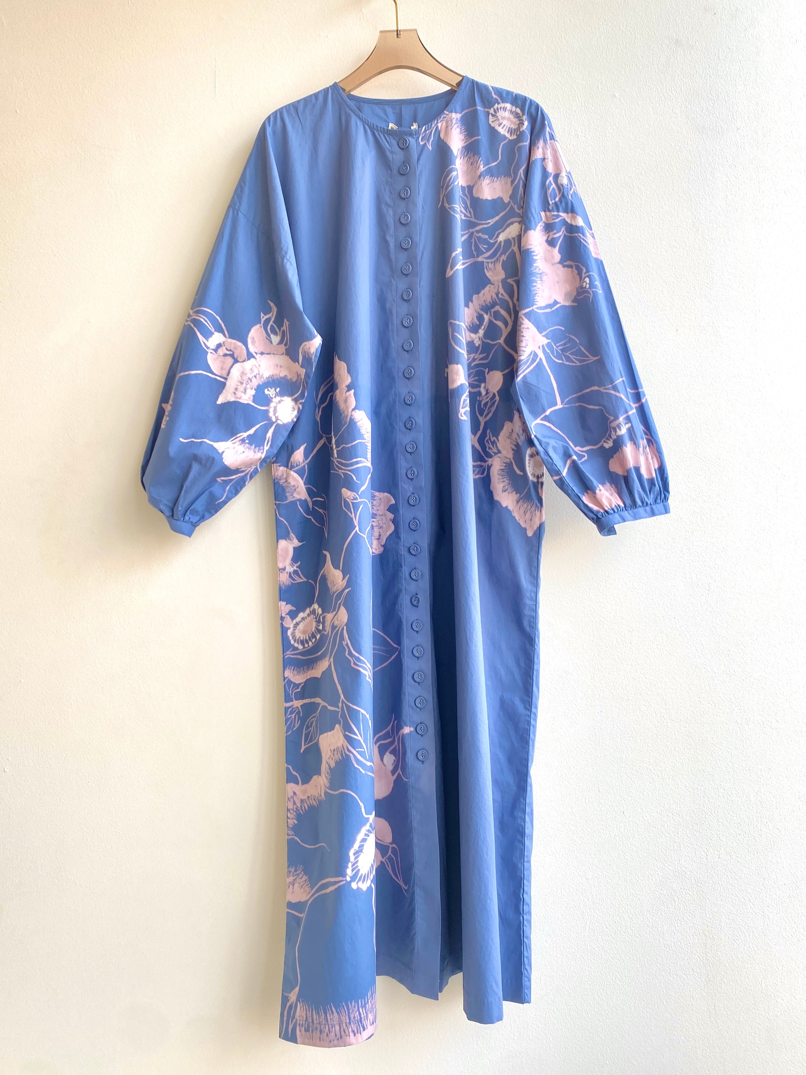 Hand Drawn and Bleach Dyed Blue Button Down Dress (Reworked)