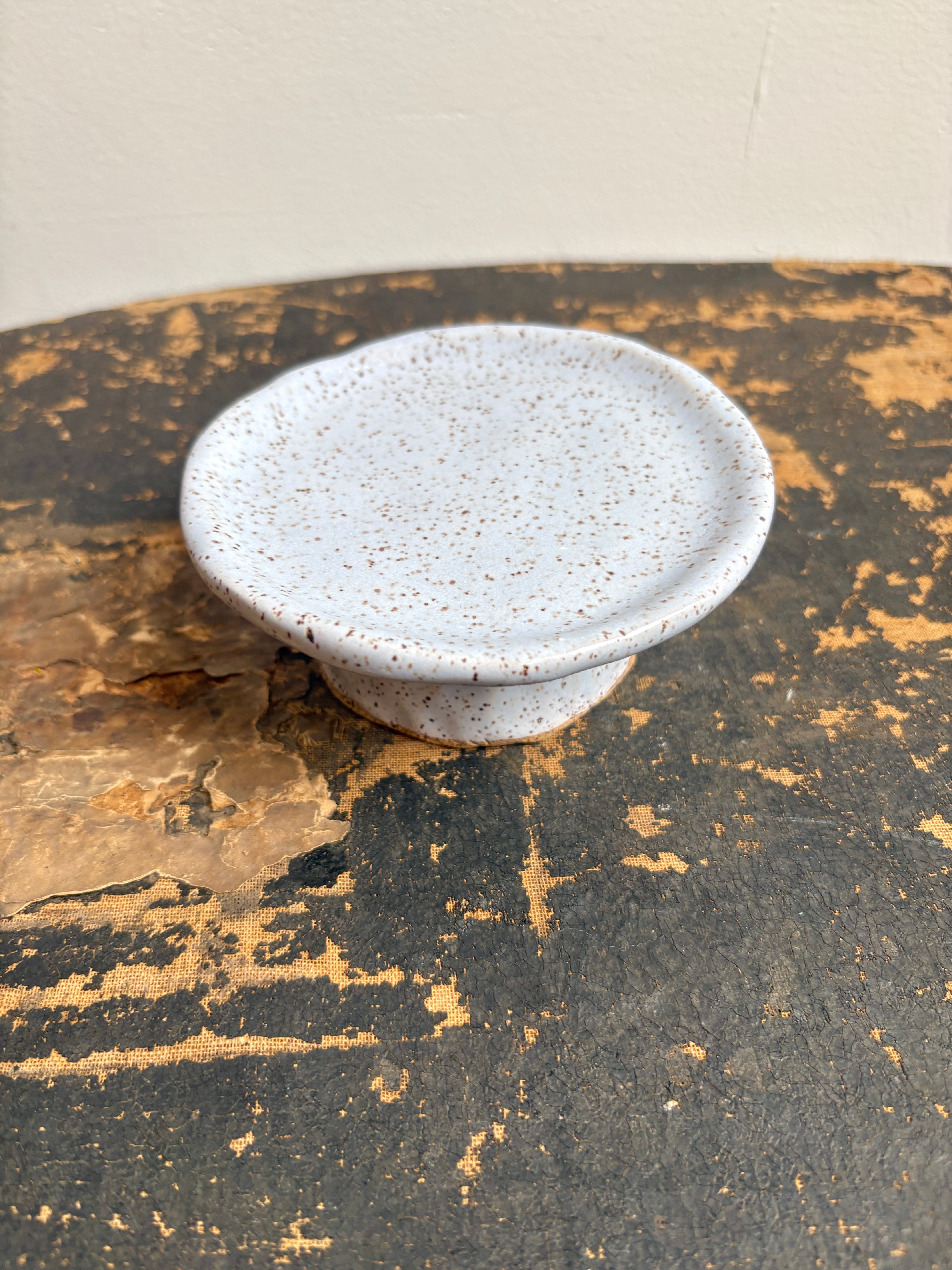 Take your tablescaping this holiday season to a new level with these pedestal trays from Kendall Ross Ceramics. In lovely, soft speckle glaze and trim proportions, these little dishes are a great addition to a charcuterie spread or a bedside table to keep your jewelry.
