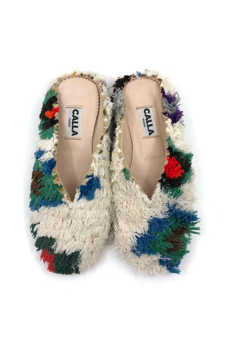 Handmade from upcycled vintage Berber rugs, CALLA’s Babouche mules exist in limited edition - just a handful for each rug. They boast textural details that are one-of-a-kind. Like all Babouche slippers, they are comforable to wear and effortlessly versatile. Every pair supports local Moroccan craftspeople and their traditions.