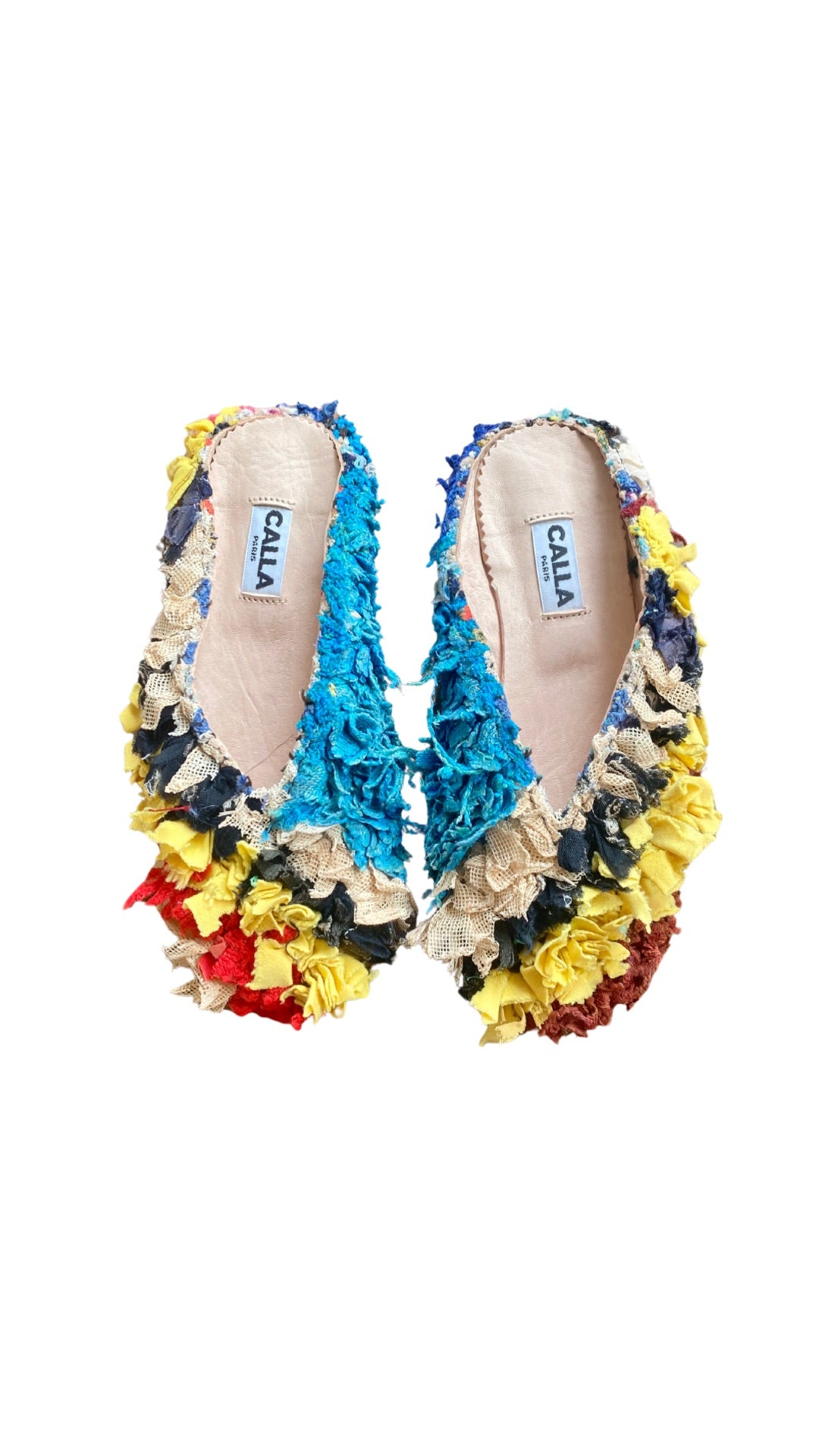Handmade from upcycled vintage Berber rugs, CALLA’s Babouche mules exist in limited edition - just a handful for each rug. They boast textural details that are one-of-a-kind. Like all Babouche slippers, they are comforable to wear and effortlessly versatile. Every pair supports local Moroccan craftspeople and their traditions.