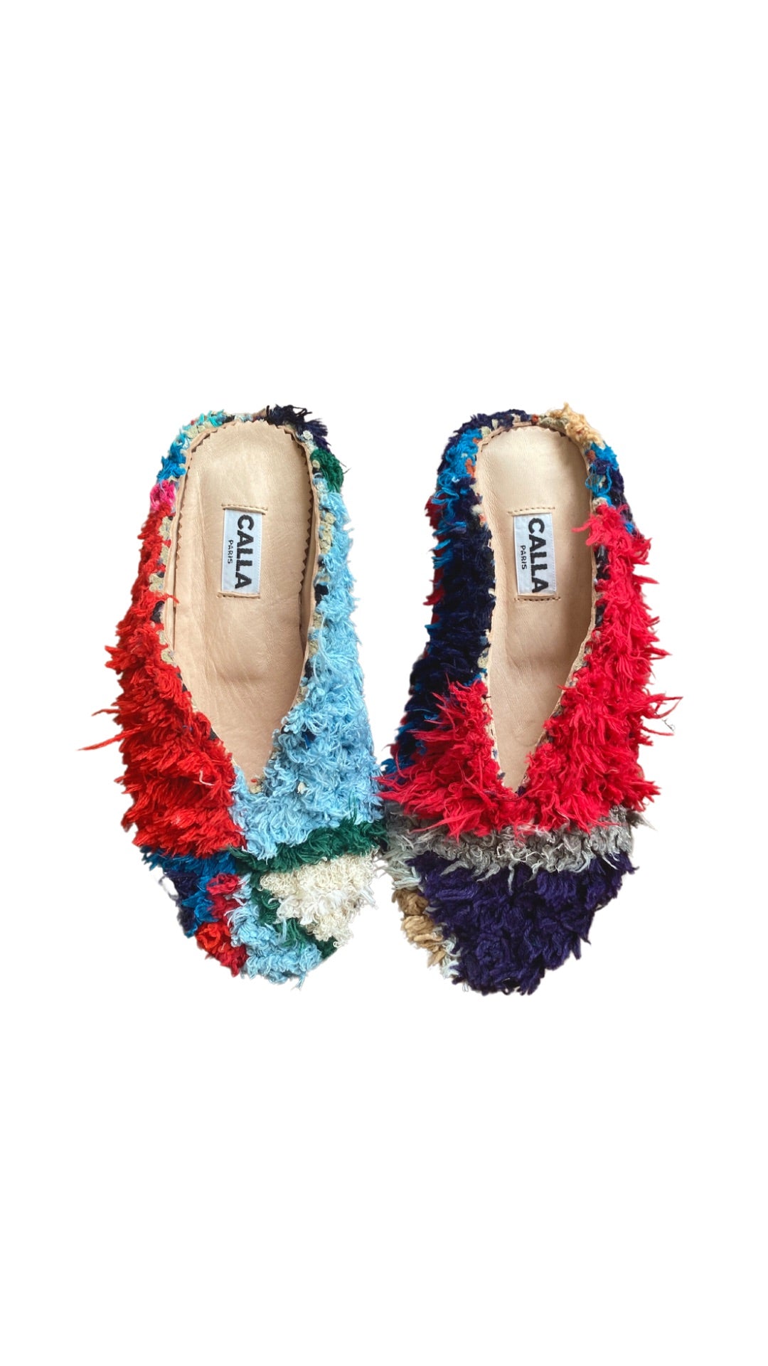 Handmade from upcycled vintage Berber rugs, CALLA’s Babouche mules exist in limited edition - just a handful for each rug. They boast textural details that are one-of-a-kind. Like all Babouche slippers, they are comforable to wear and effortlessly versatile. Every pair supports local Moroccan craftspeople and their traditions.