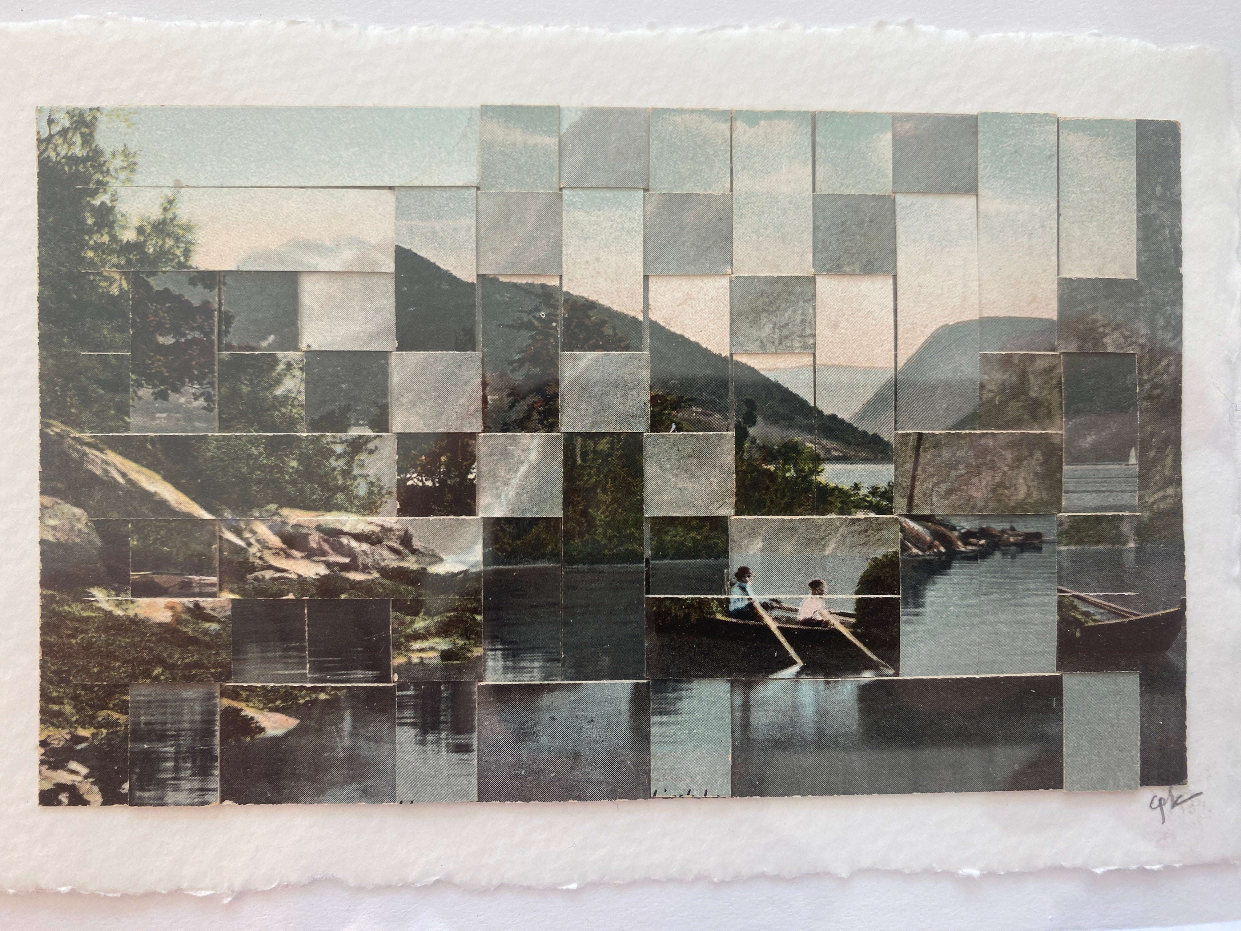 Altering the images by weaving multiple views together, the pixelated scenes become intriguing alternate visions of a reality suspended from their original context. Observation is a personal modification of the visual information one receives. The aged quality of the photograph informs and enhances the varied combinations creating simultaneous vantage points. They playfully represent the merging of a vision of history, the moments caught and the subjective impressions which through the passage of time have been transformed.