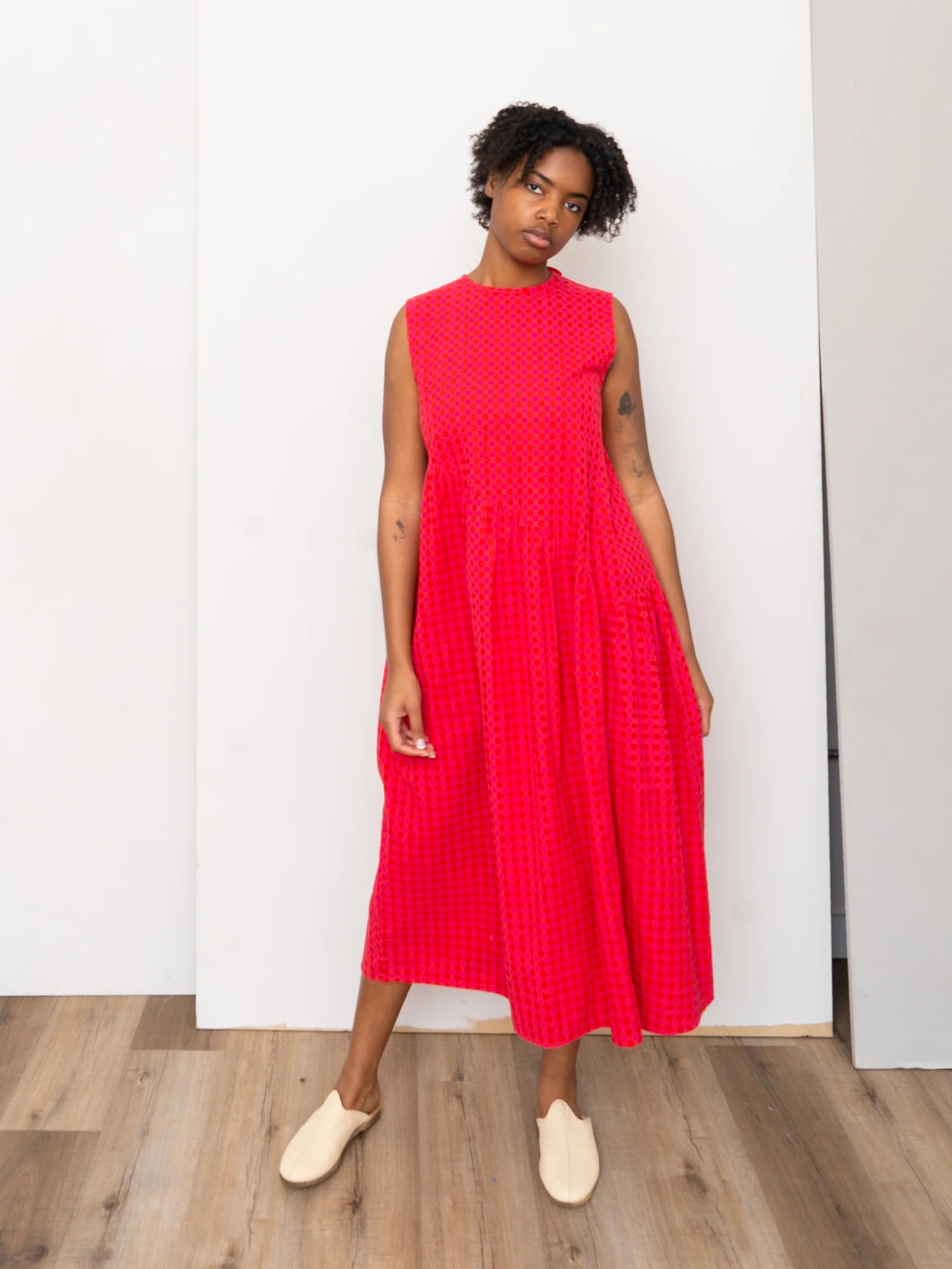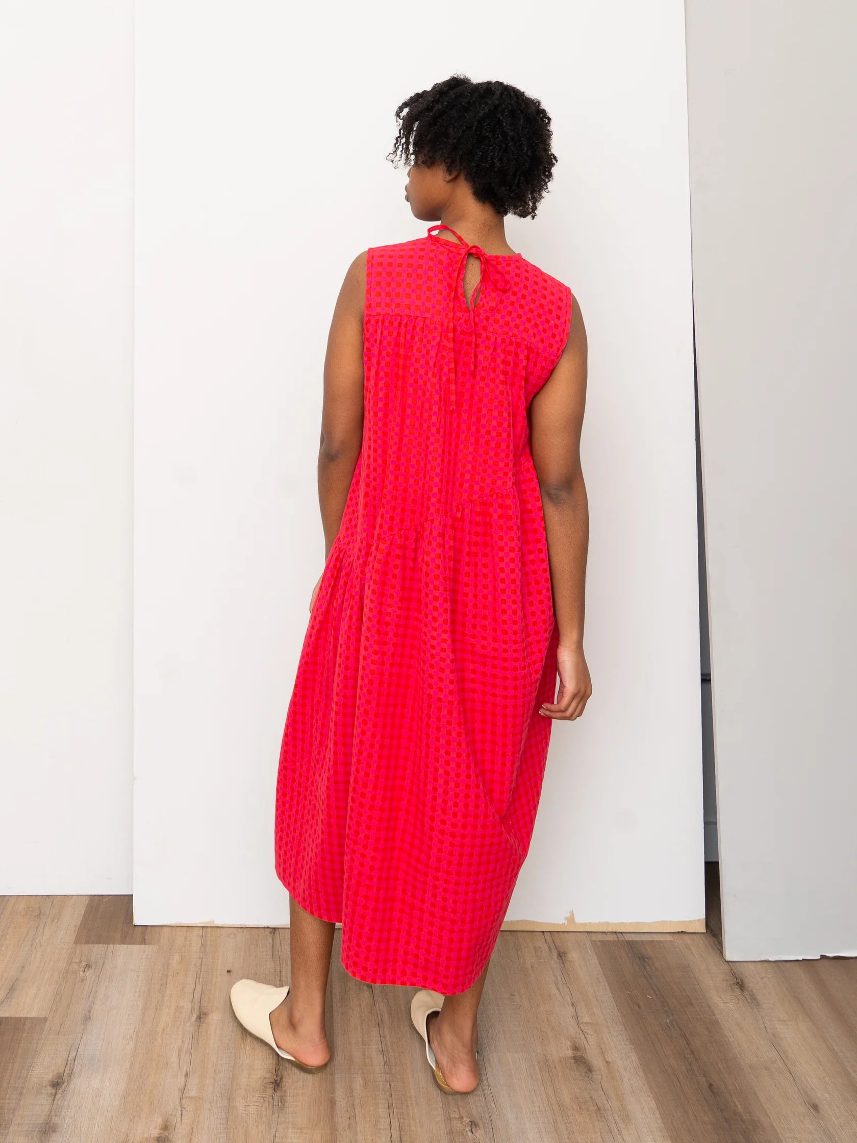 The Anan Dress is an easy-to-wear silhouette with asymmetric gathered tiers, a tie-neck opening in back, and handy side pocket. Made from naturally dyed, hand-loomed cotton gingham check fabric, woven in East India, each piece is finished with thoughtful hand-stitched details and made to feel as beautiful on the inside as it looks on the outside.