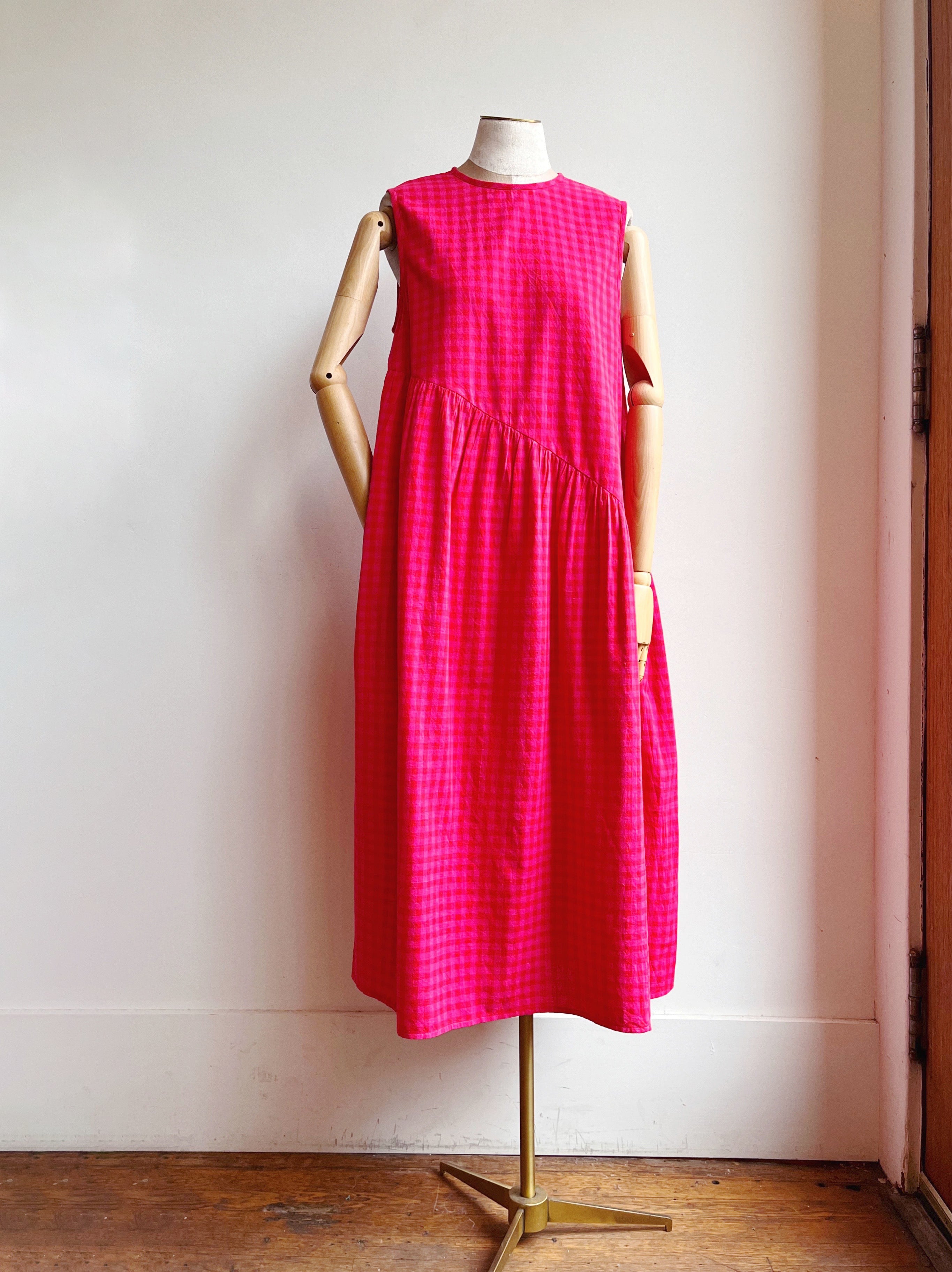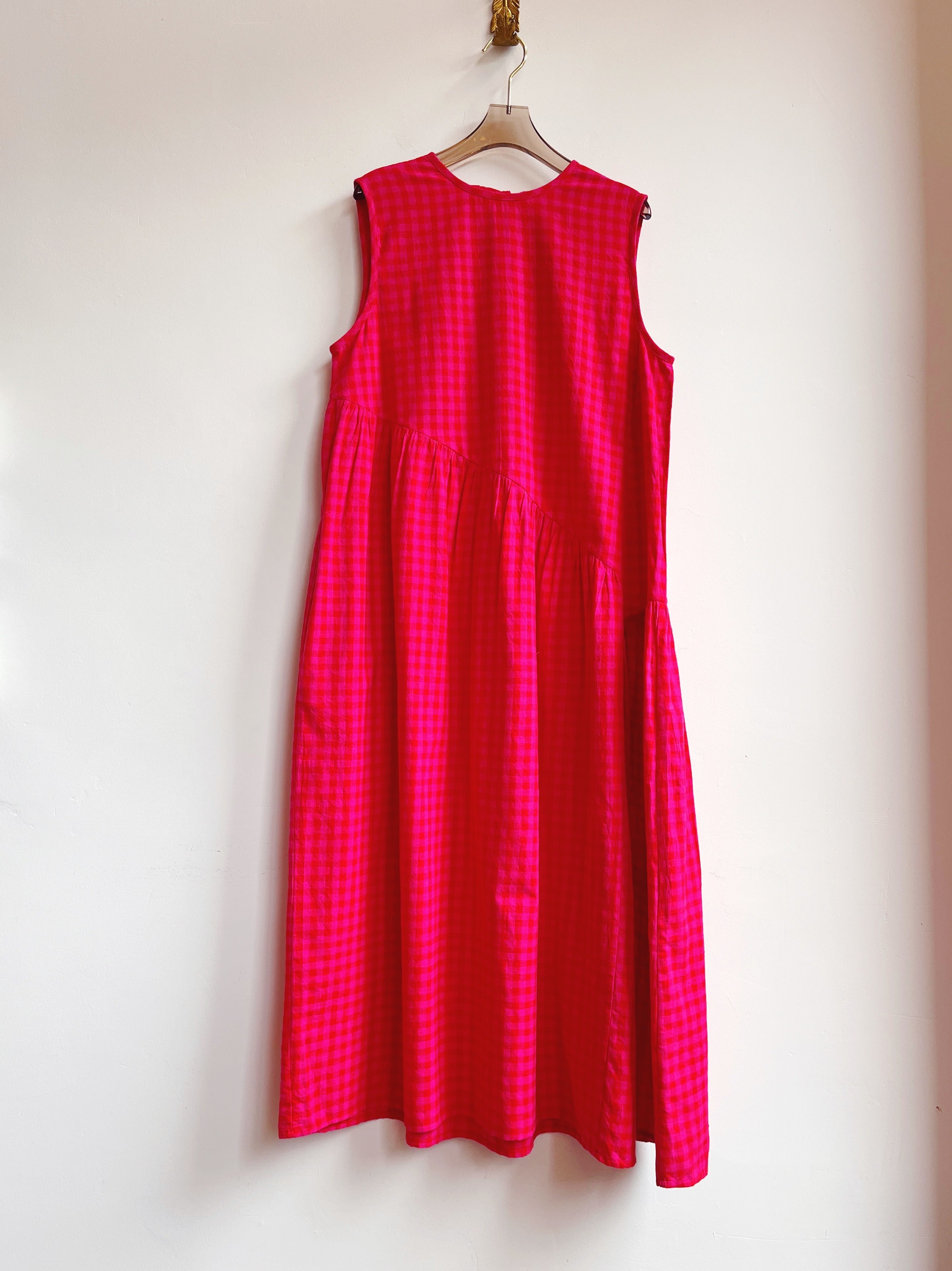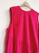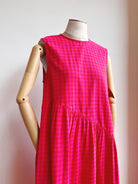 Anan Long Gathered Dress in Pink & Red Petunia Check
