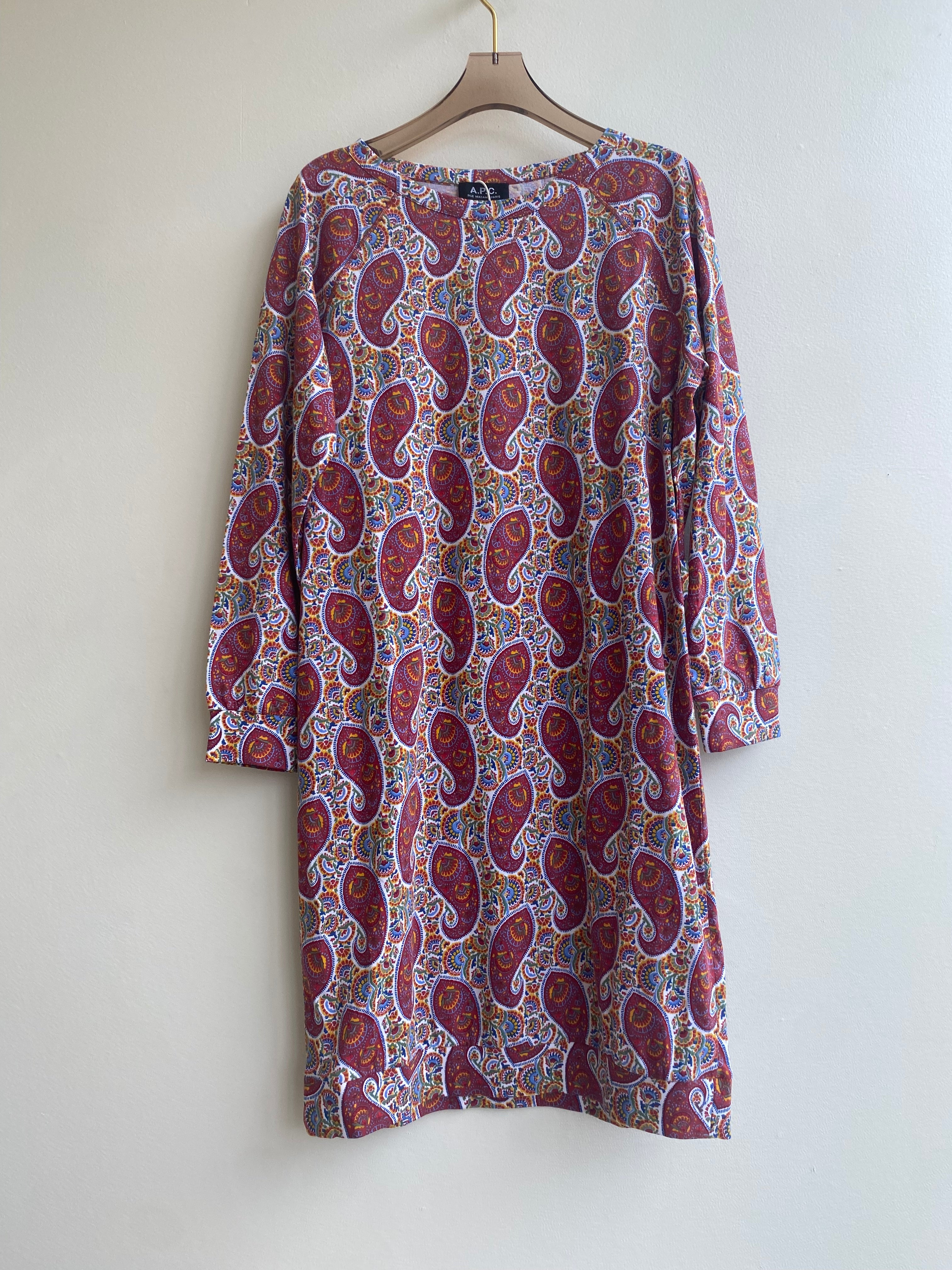 Vintage paisley-print APC dress, perfect on its own or layered over tights and under a sweater in cooler weather. Size M.