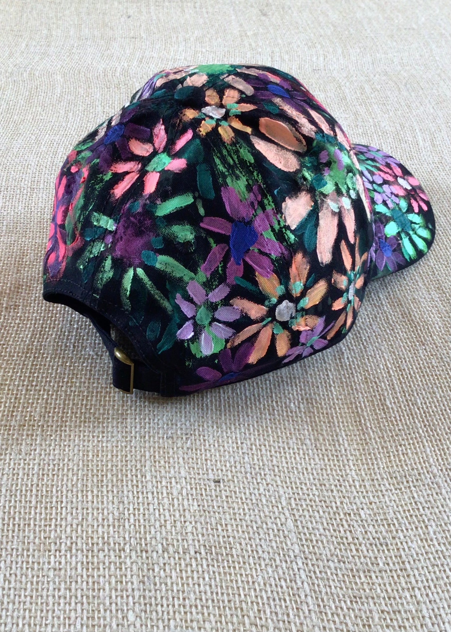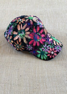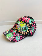 Black Hand Painted Neon Multi Color Flowers Baseball Cap