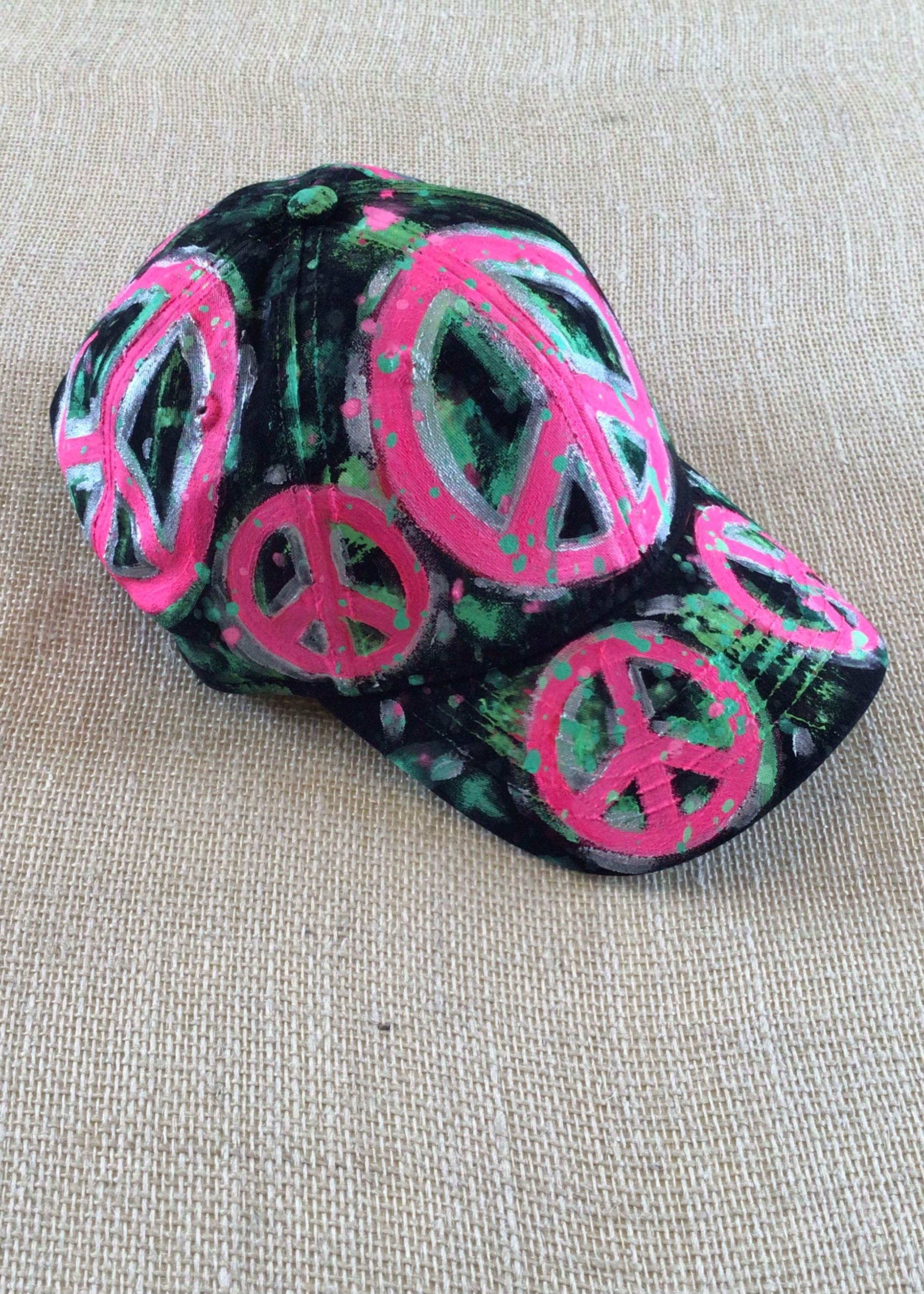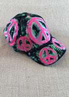 Black Hand Painted Neon Pink Peace Signs Baseball Cap