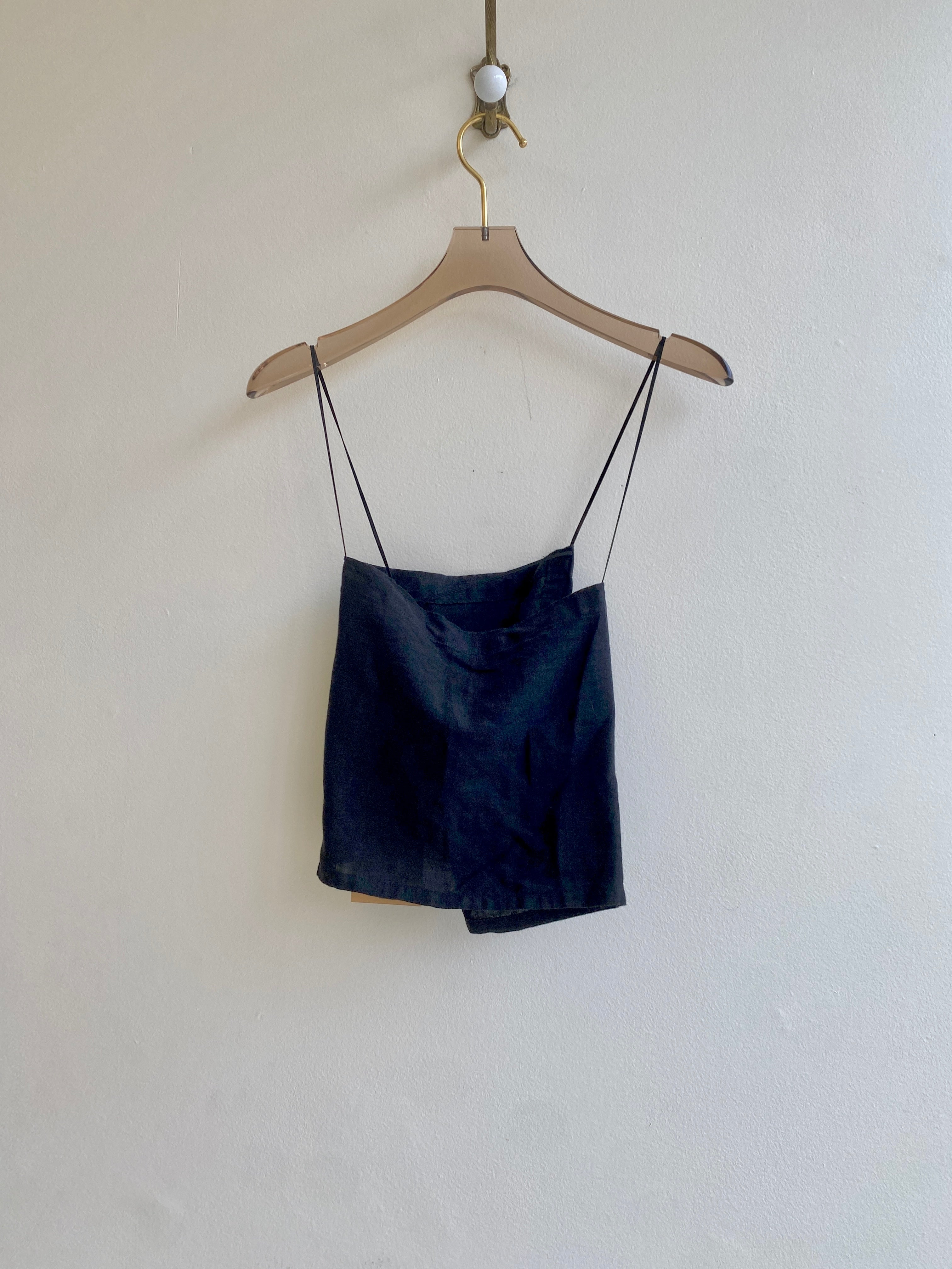 Black Linen Backless Crop Top