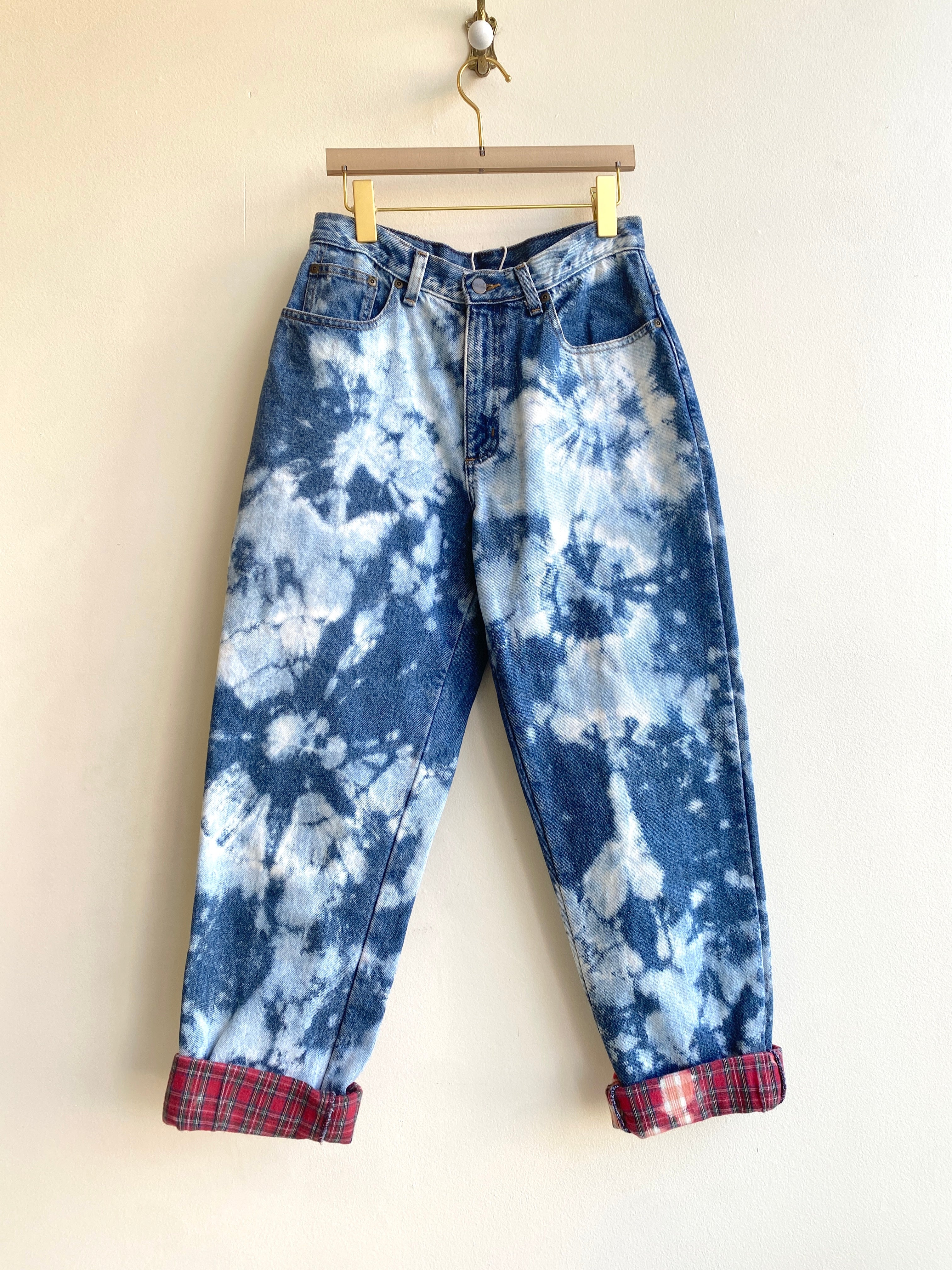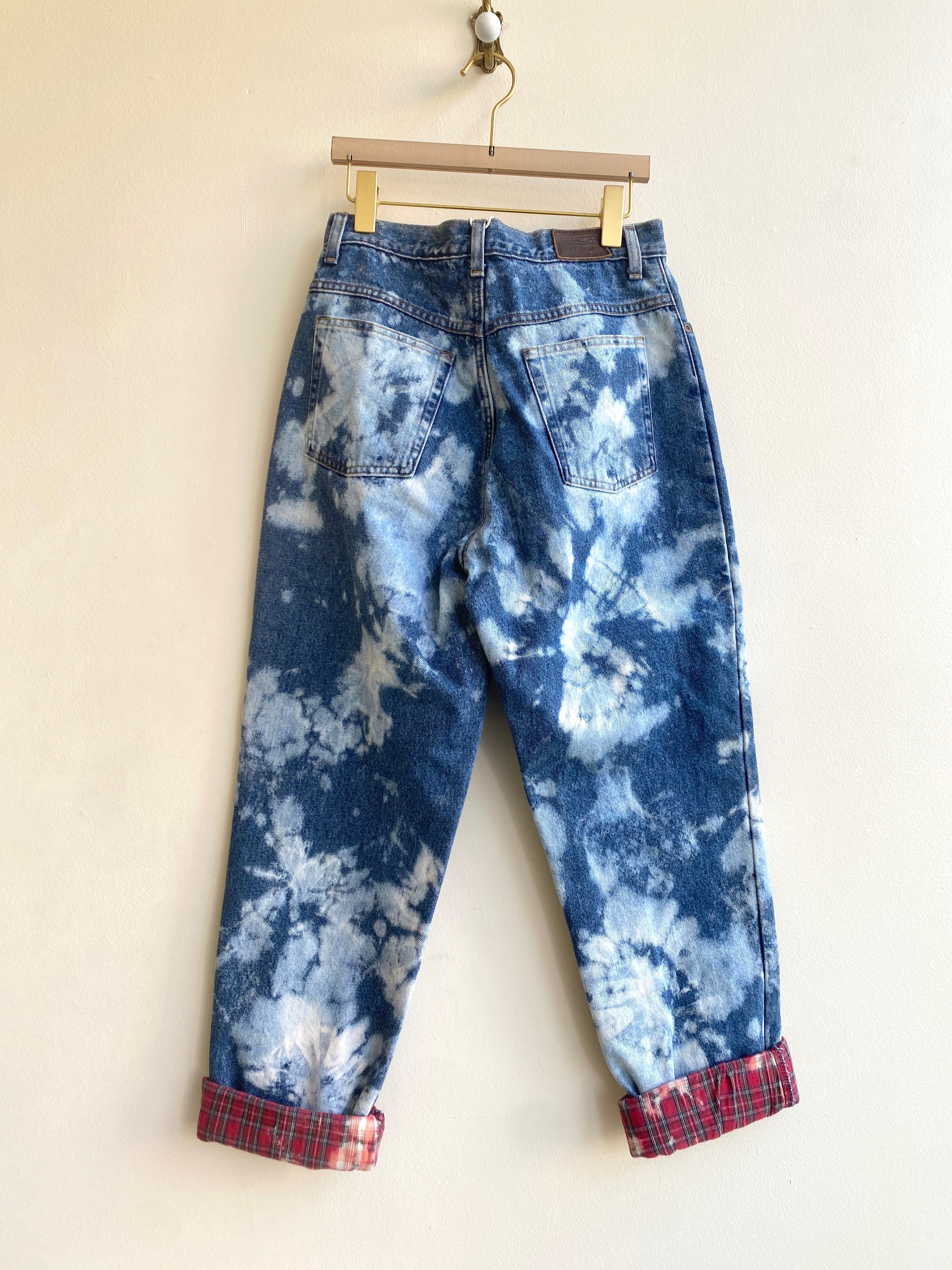 Blue Acid Wash Jeans w/ Plaid Flannel Lining (Reworked)