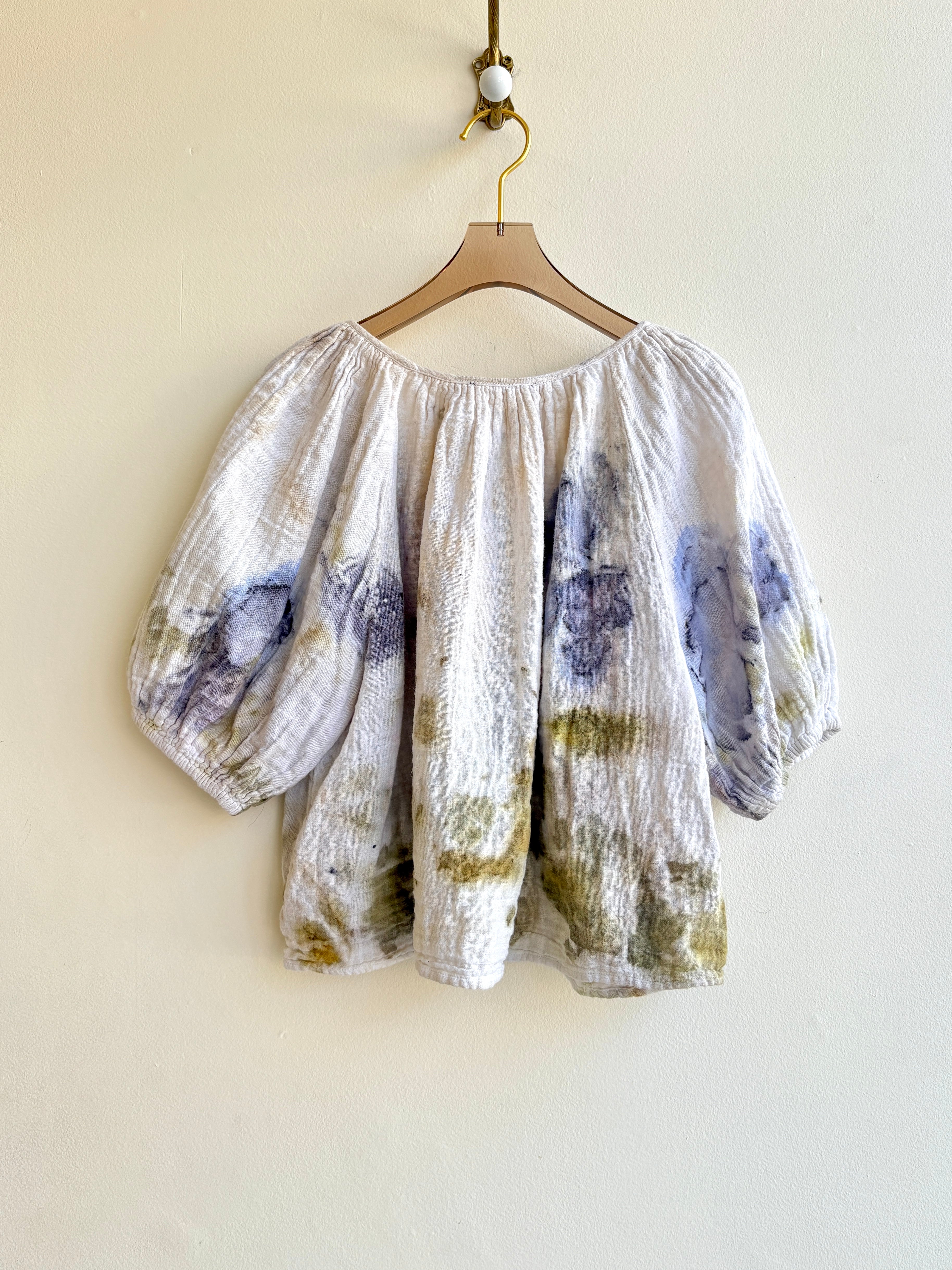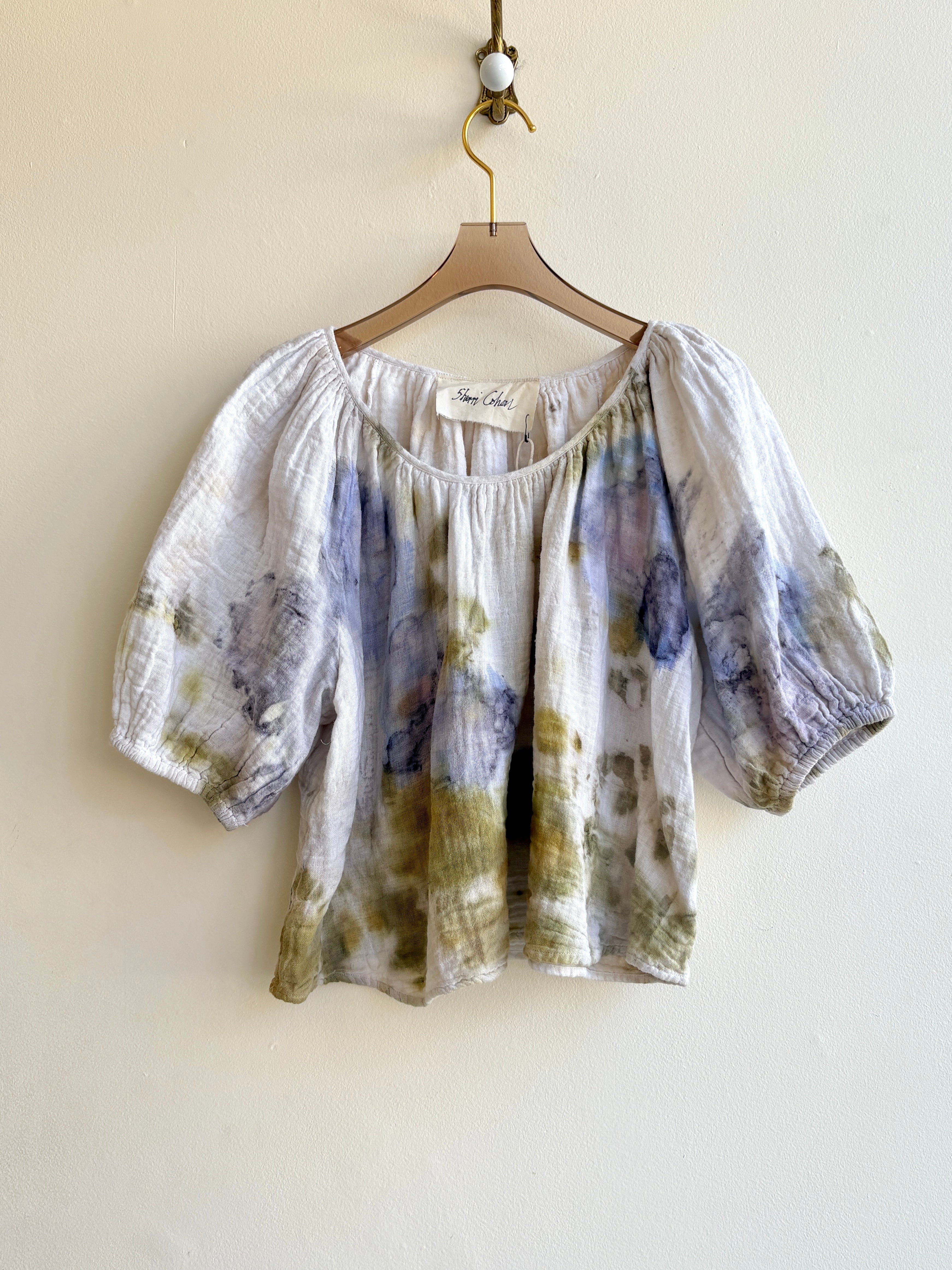 Blue & Green Eco Printed Peasant Top (Reworked)