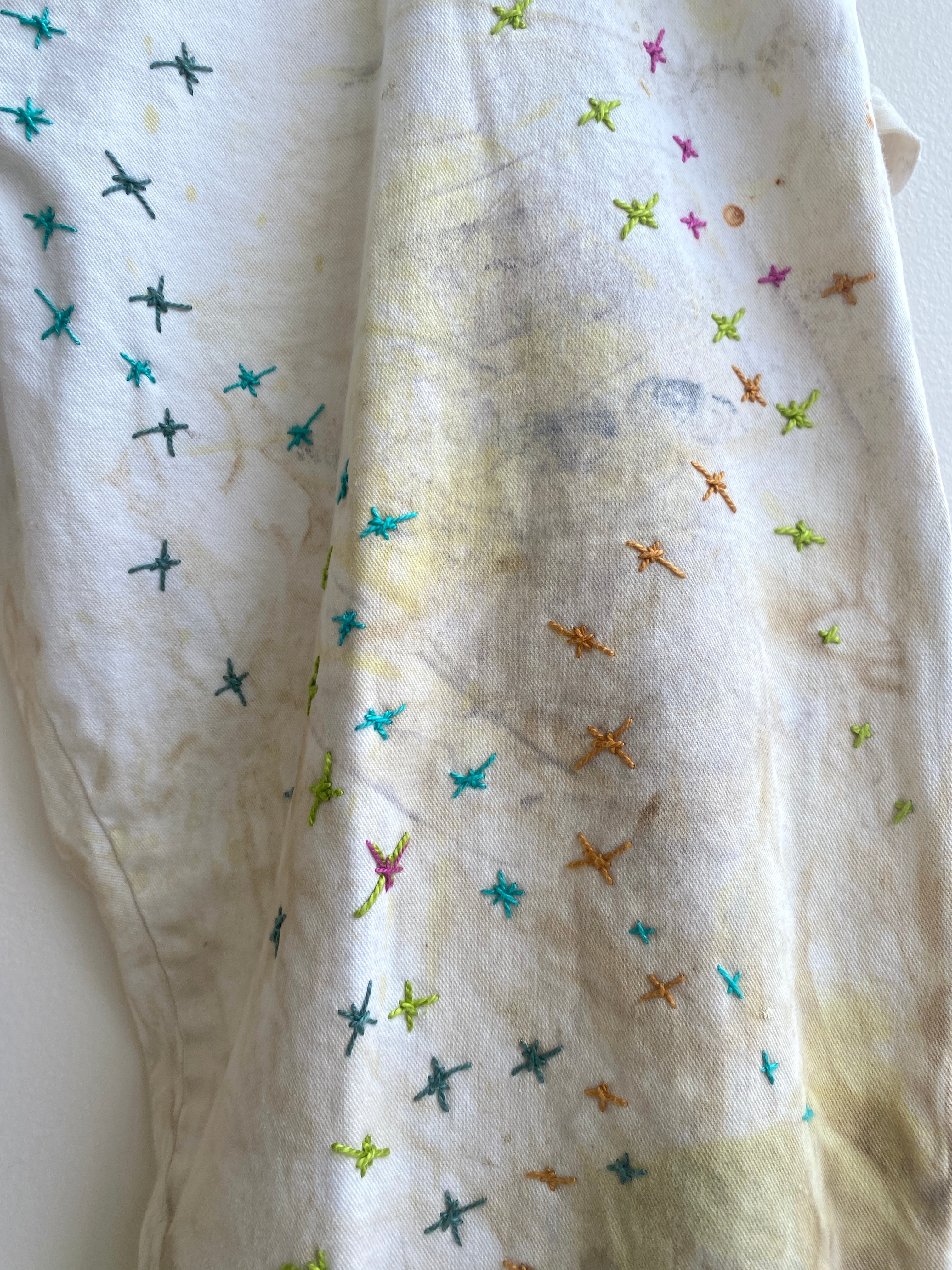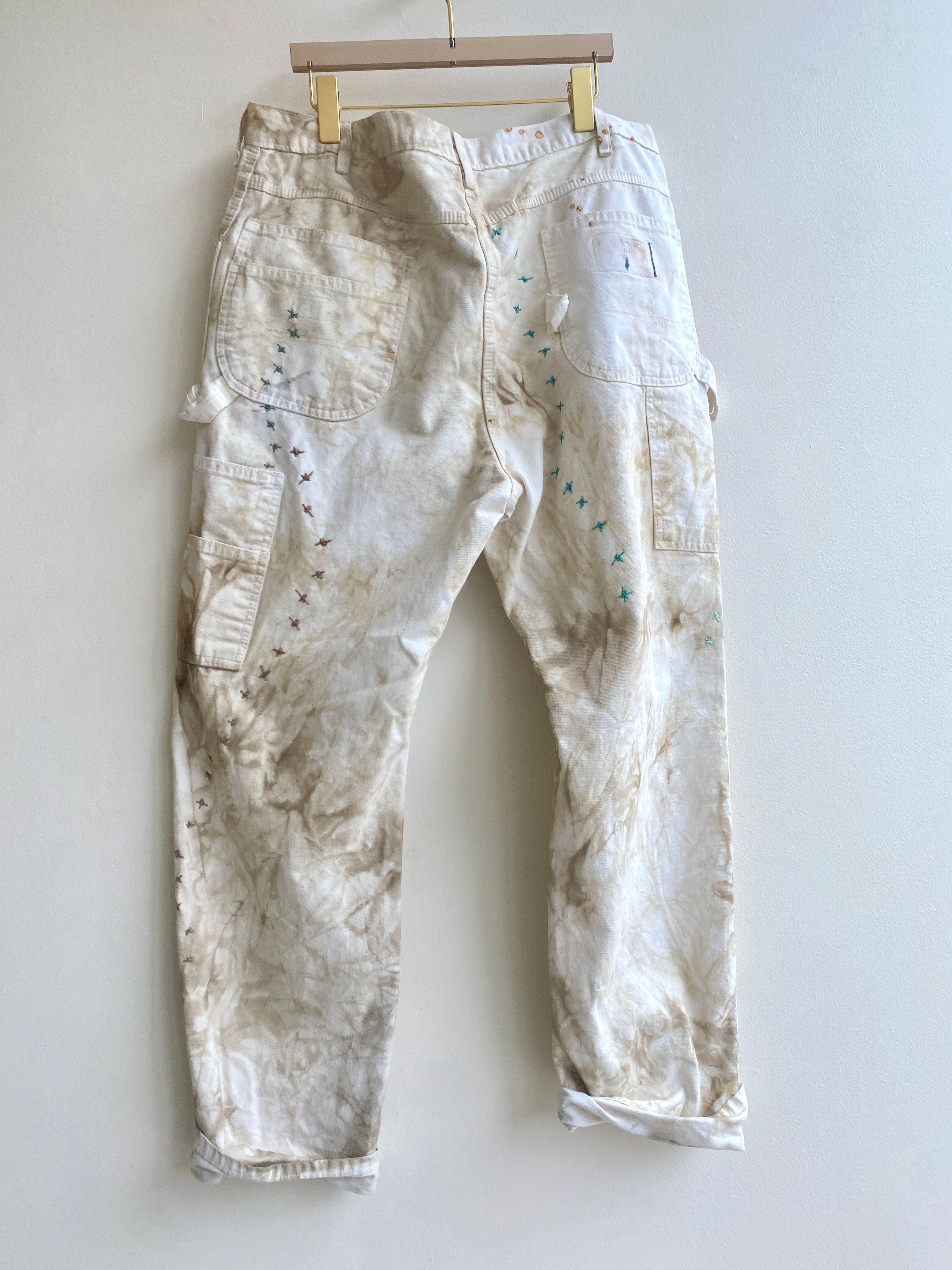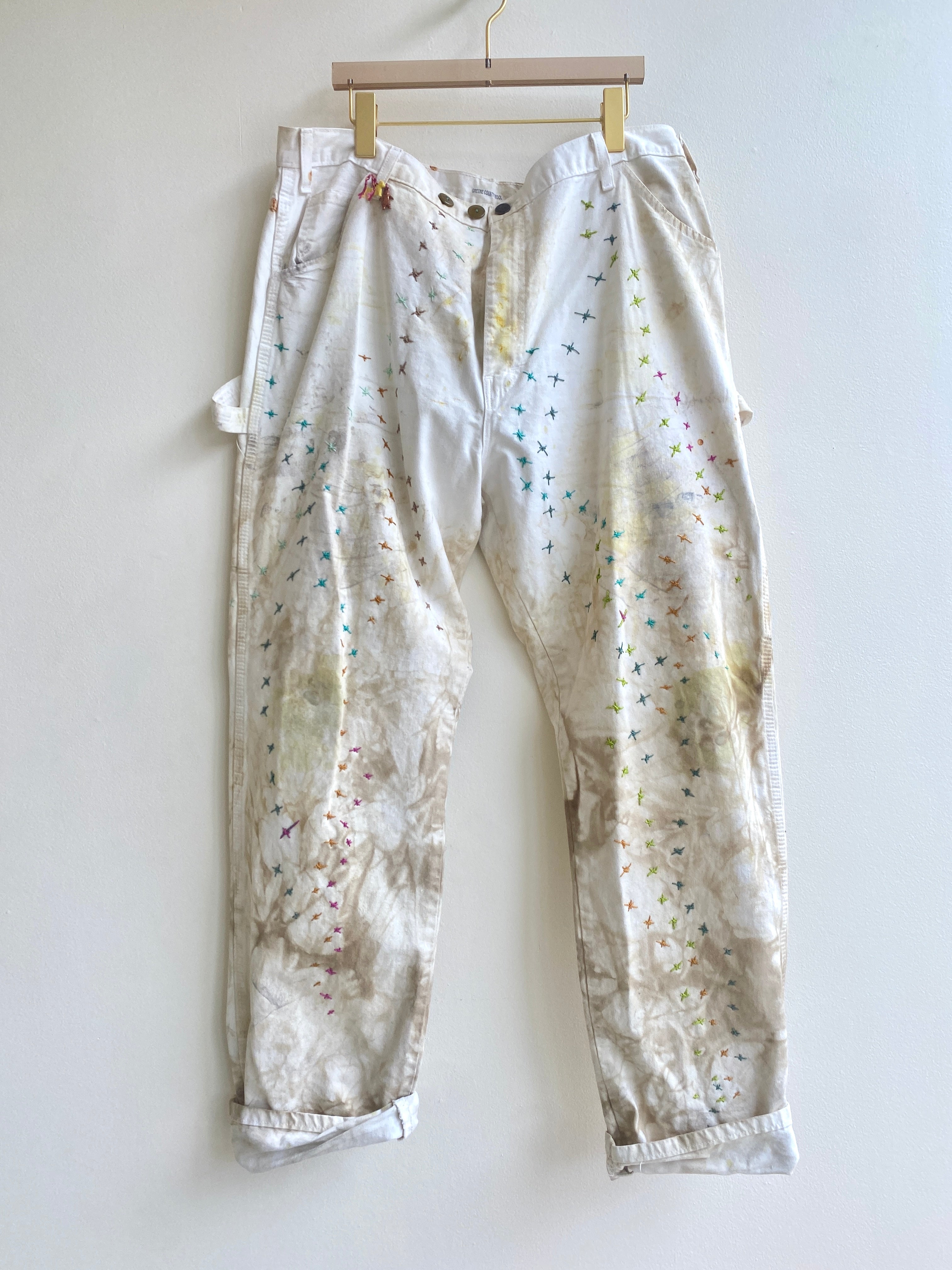 Greene County Wool is a one-woman business in Hudson Valley NY, extending the life of post-use painters’ pants through hand-embroidery, dyeing and other embellishments. Every pair is one-of-a-kind.
