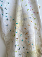 - Hand-embroidered stars in colors, blue, slate gray, green, mustard, pink, brown