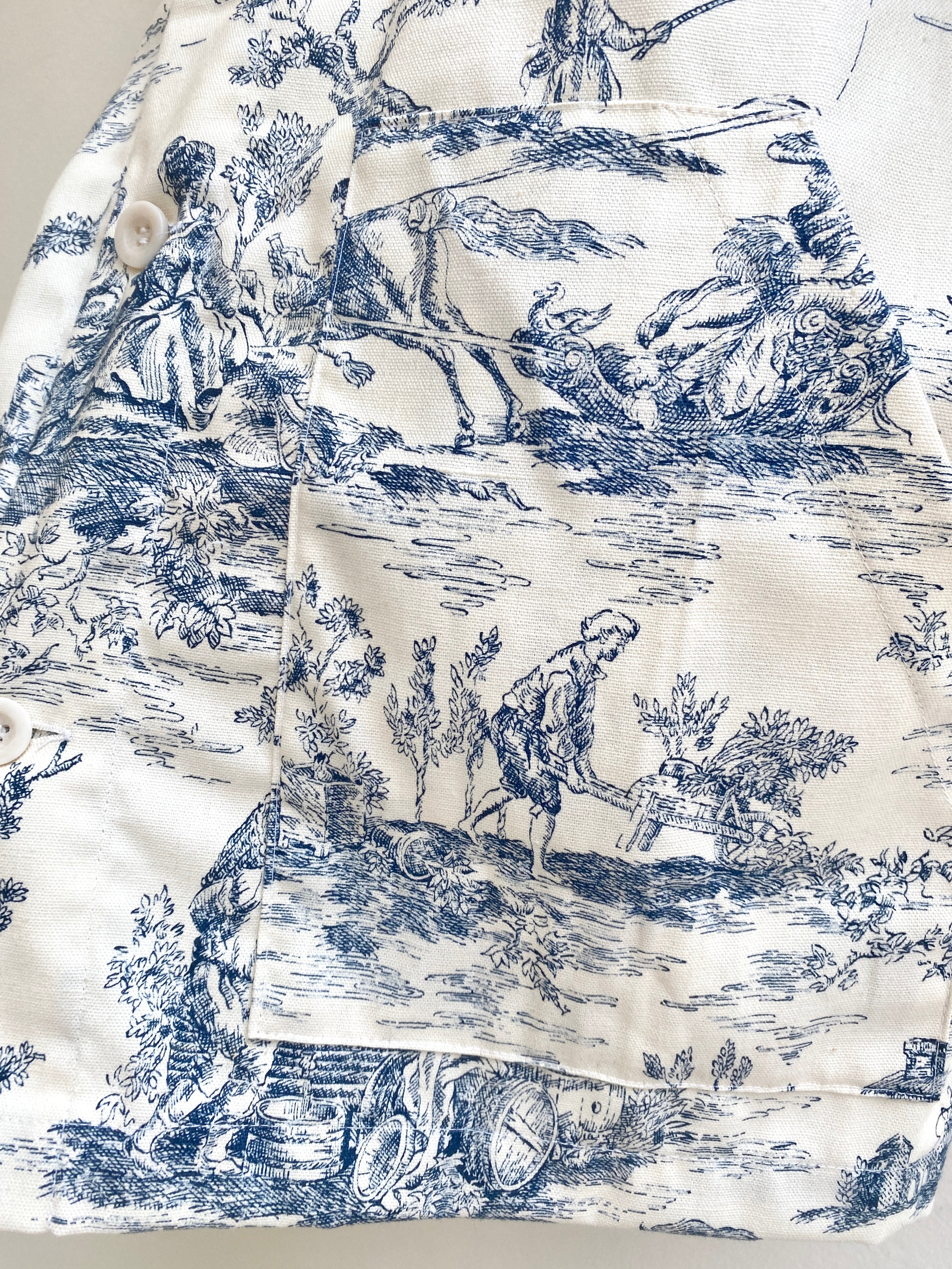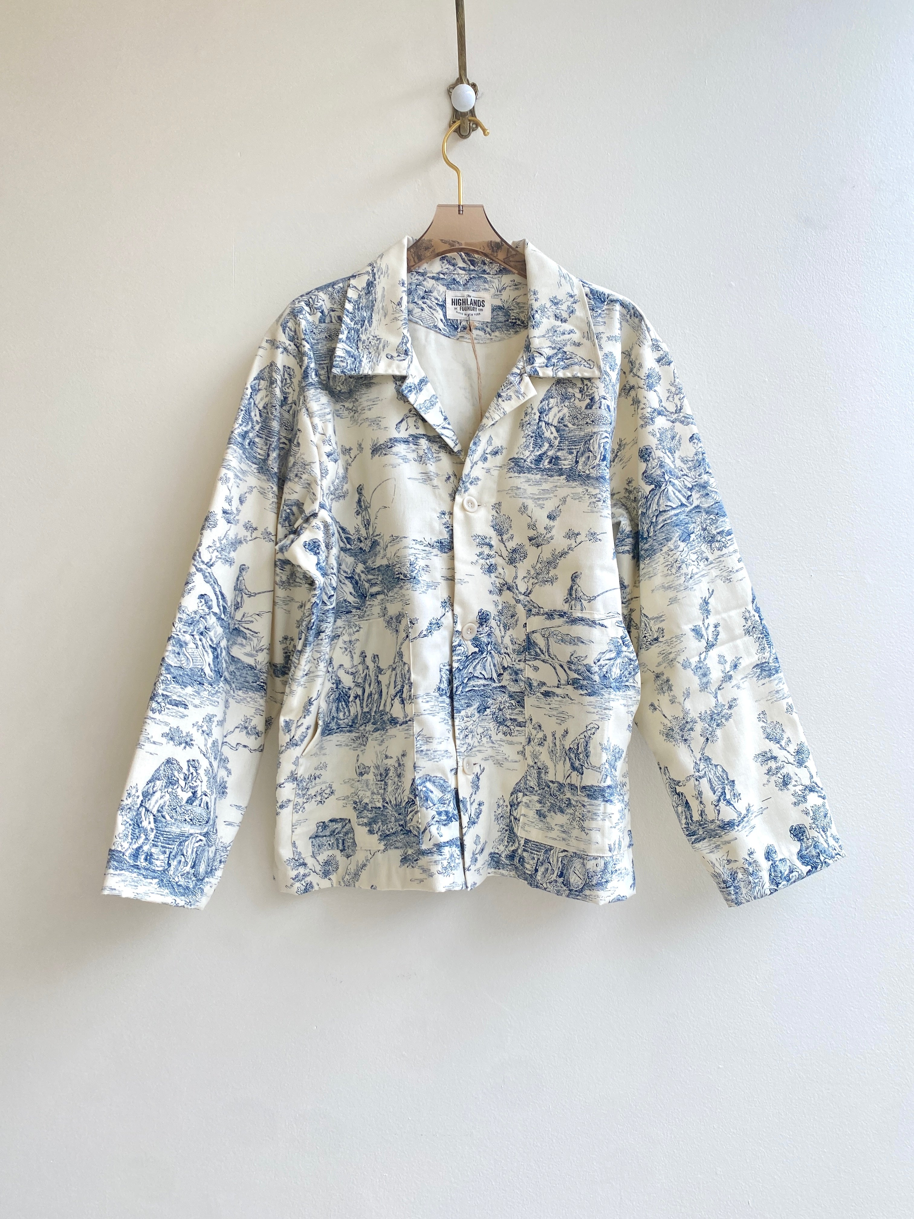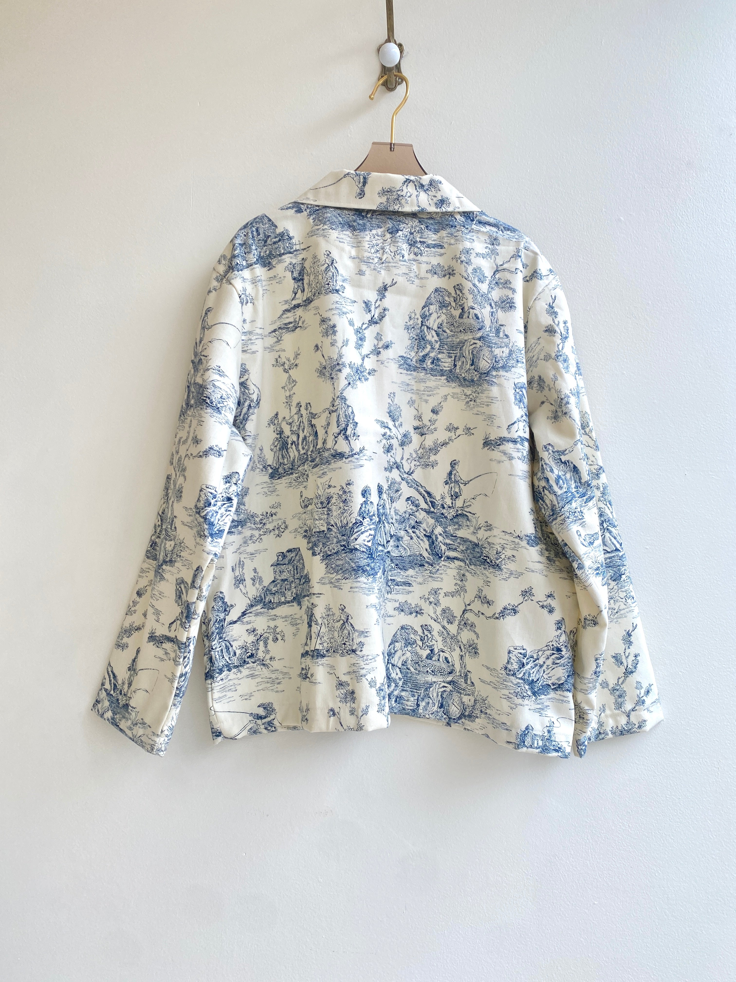 Blue Toile Button Down Utility Jacket