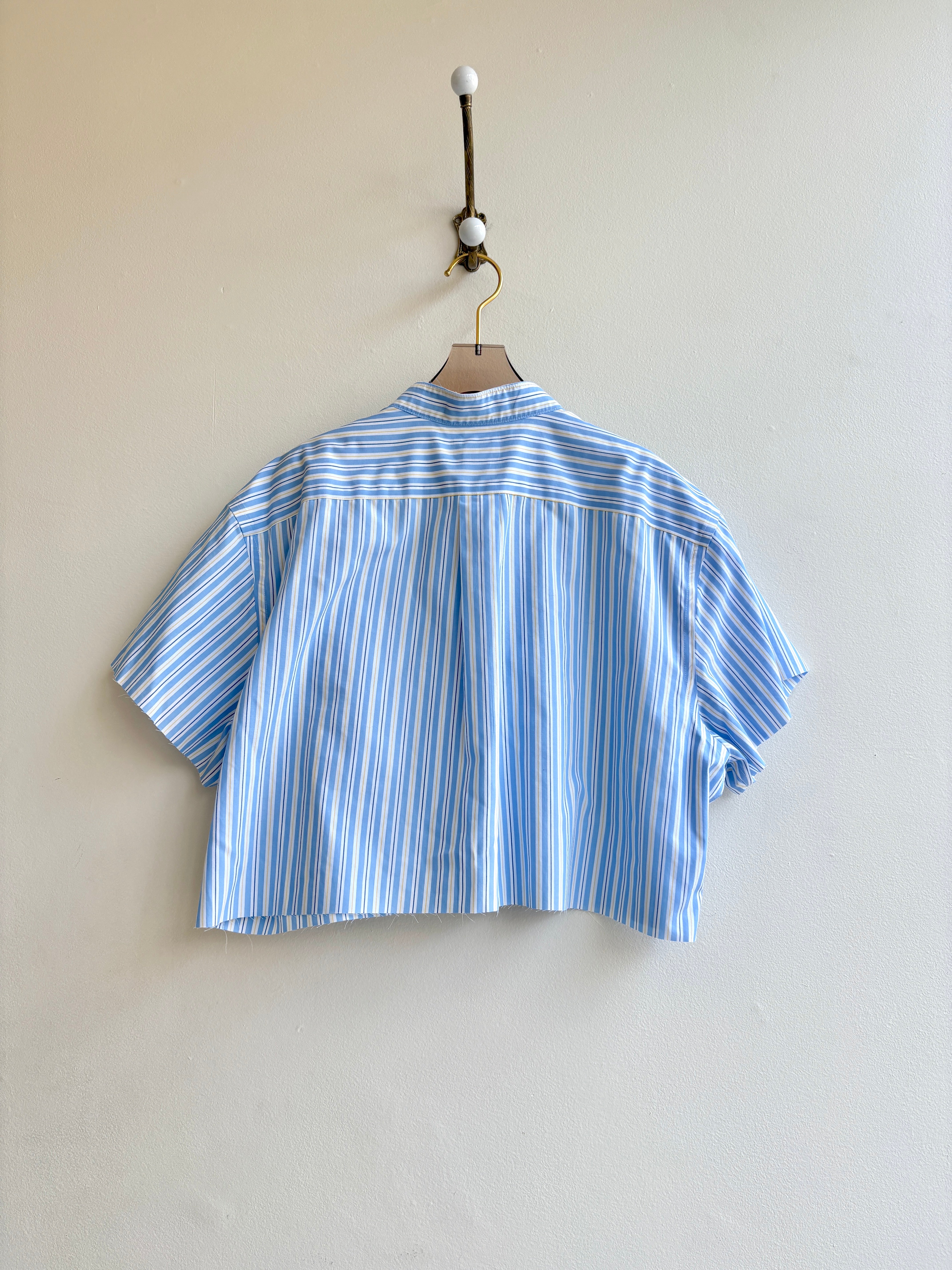 Blue & Yellow Stripe Short Sleeve Annette Crop Top (Reworked)