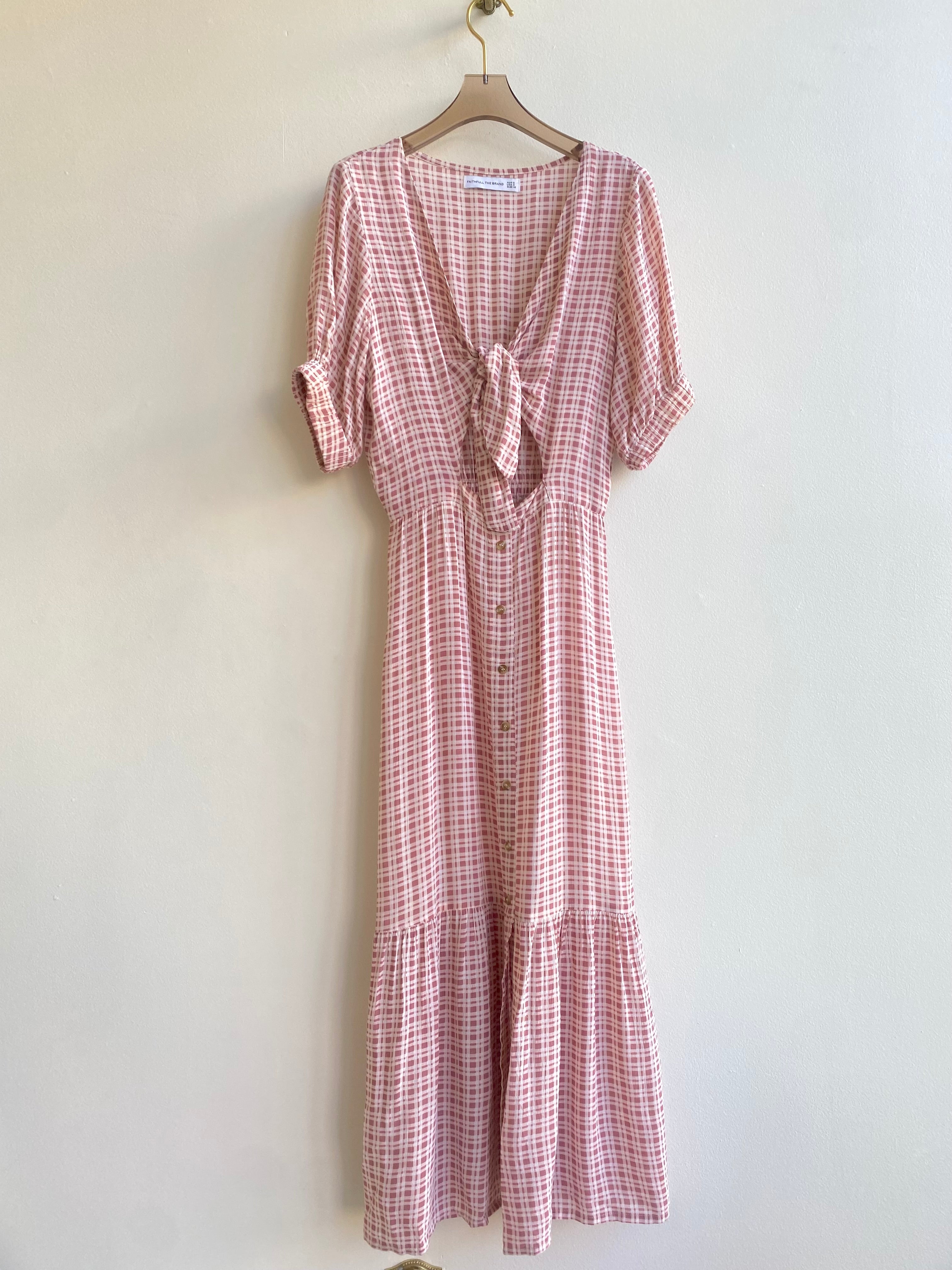 Faithfull the Brand | Blush Gingham Tie Bust Button Up Dress (Vintage)