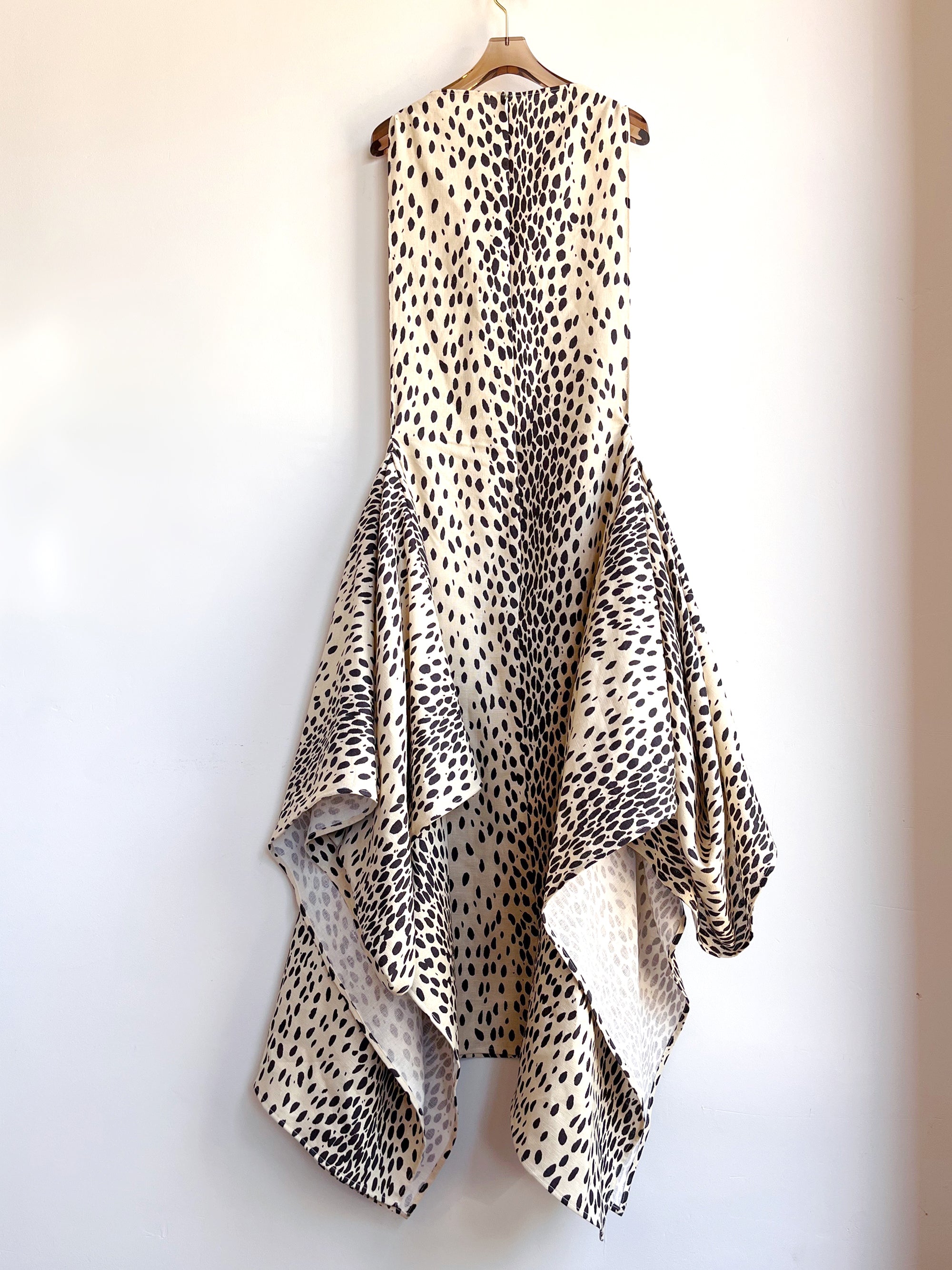 Our Zero-Waste Dress is so unabashedly pretty they tend to sell just as quickly as we can get one onto the floor. This one was sewn from a stunning deadstock linen in cream with black cheetah print and we have enough fabric to make a small number! Dress it up for a party or wedding, take it for a walk barefoot on a beach, or throw on a jean jacket and sneakers for a day out and about.