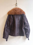 This reworked vintage M-65 Military Liner Jackets, upcycled by Sloppy Seconds, is the perfect blend of utility and style. Versatile in every way; from transitioning between seasons, layering underneath other jackets, or as a statement in itself. It will become a go-to staple in your closet either way. Comes with a removable rust brown alpaca fur collar.