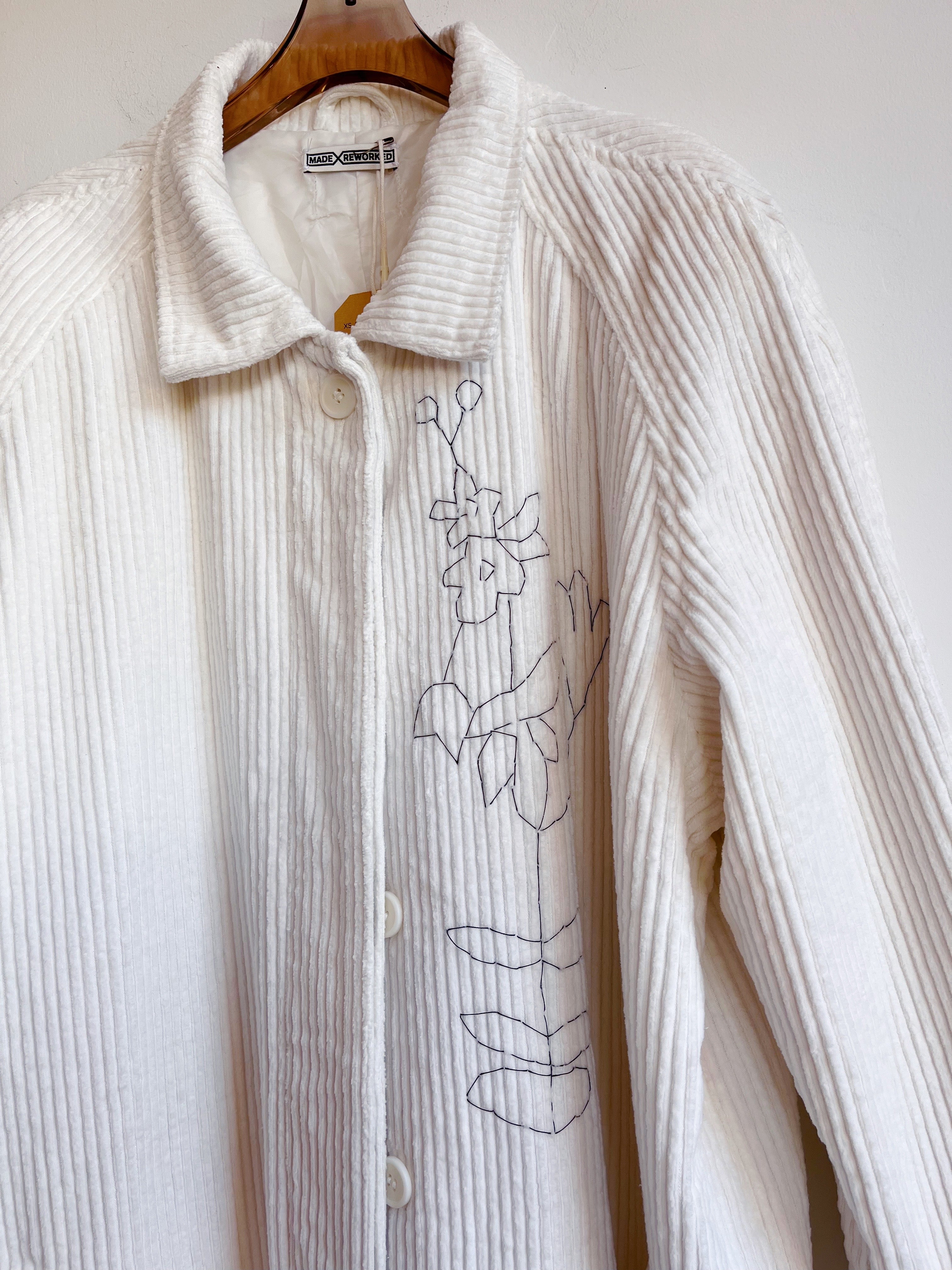 Ivory Corduroy Duster w/ Hand Embroidery (Reworked)