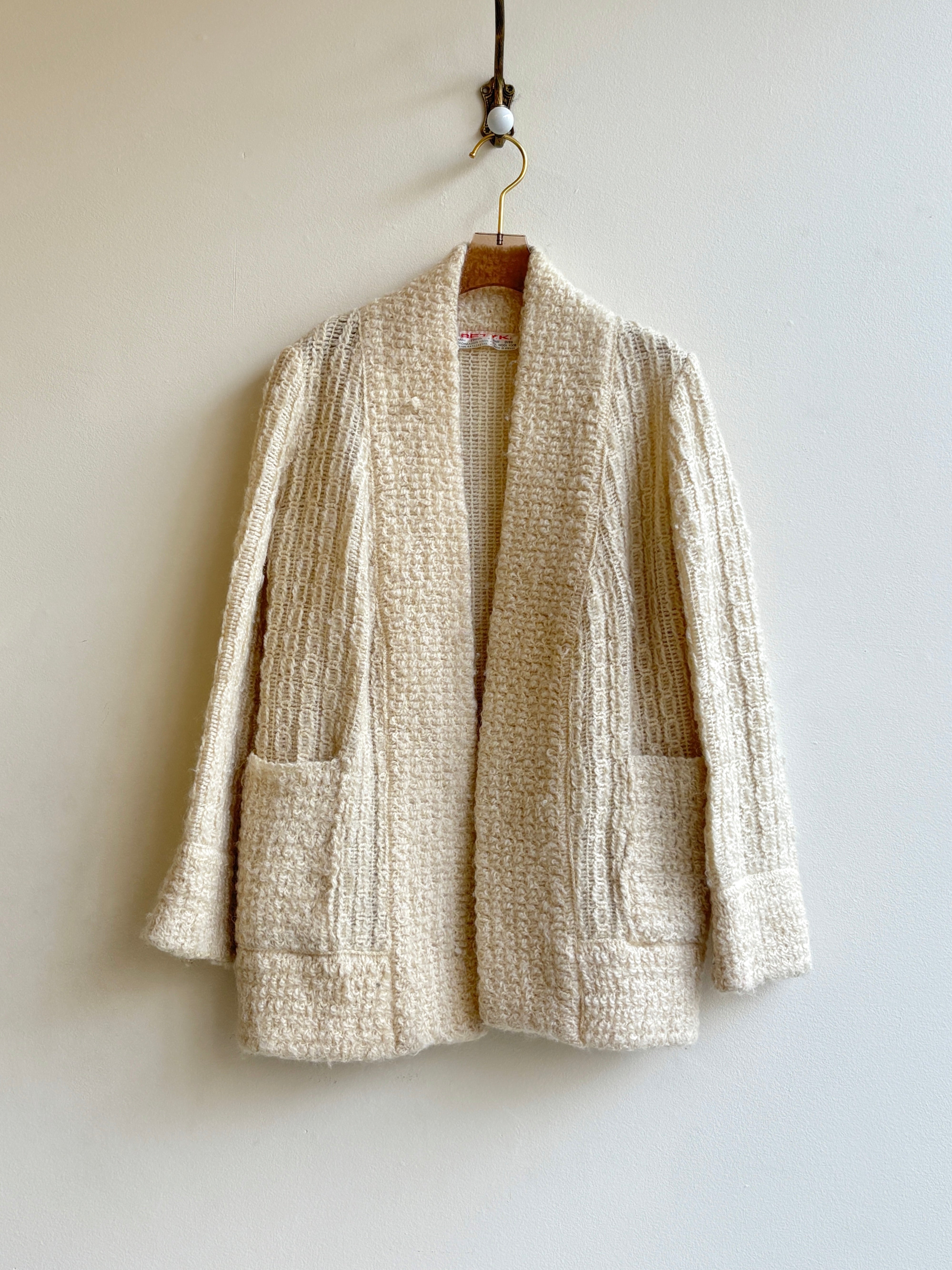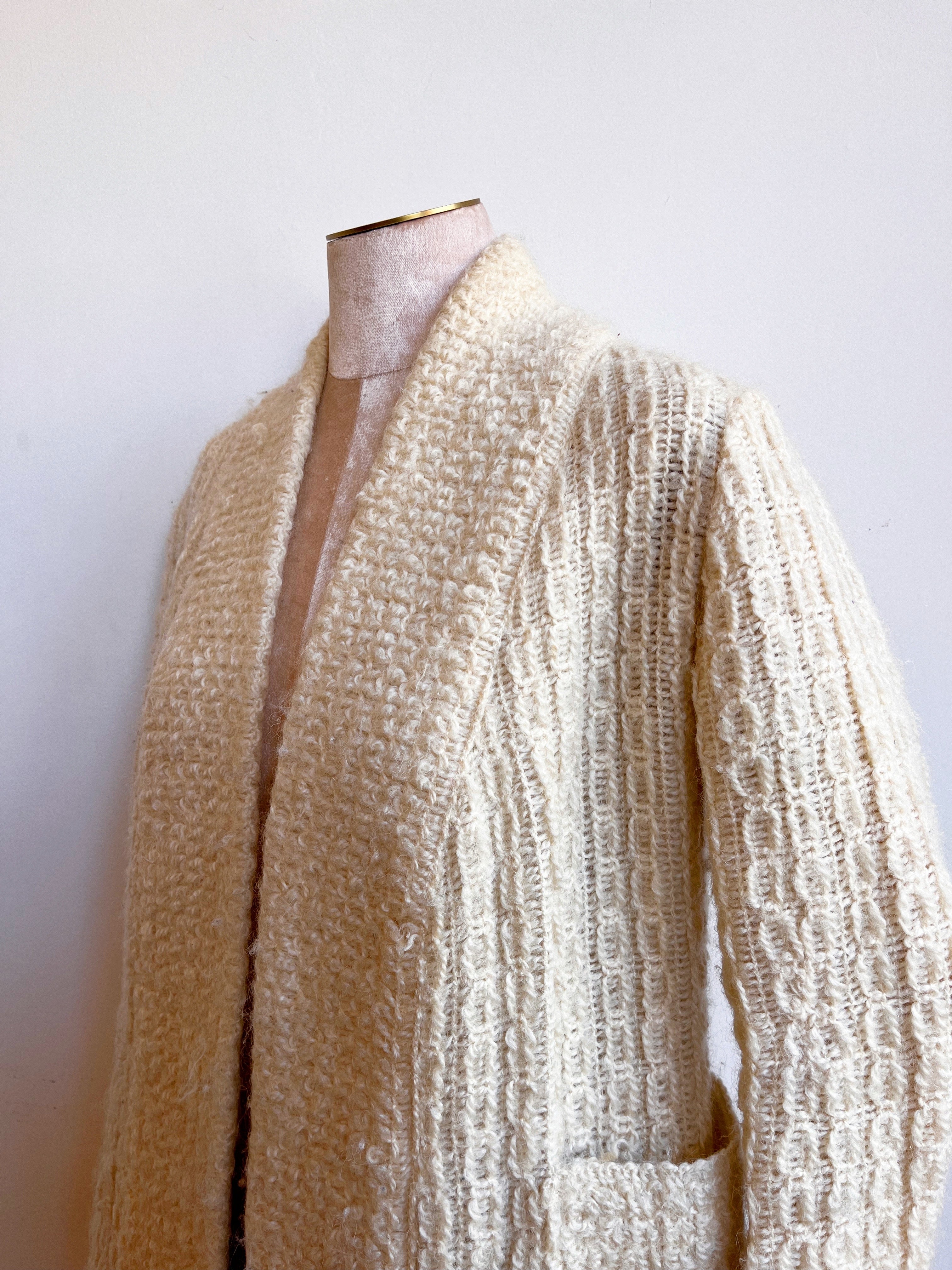 Ivory Wool Shawl-Collar Cardigan (Vintage)