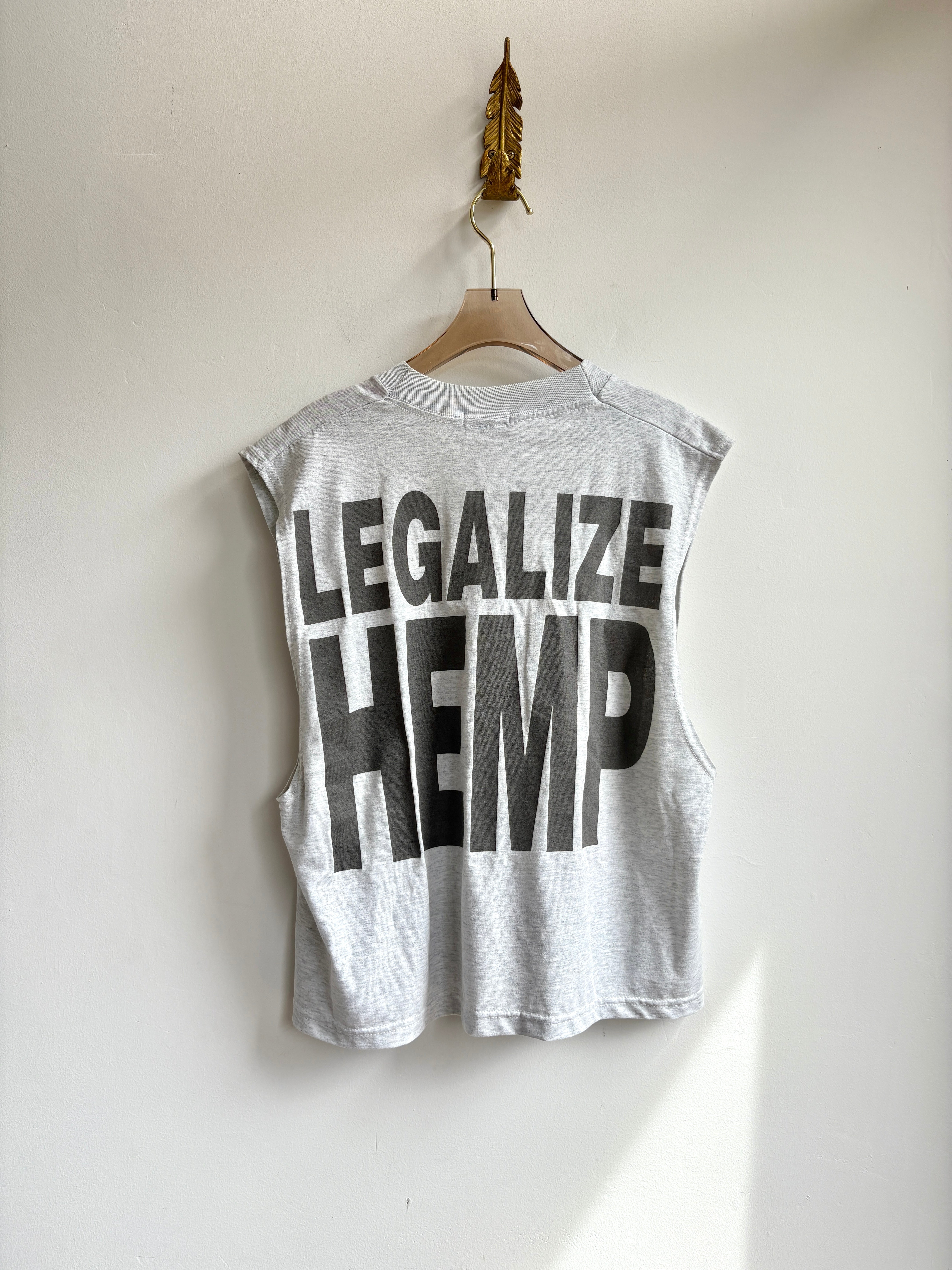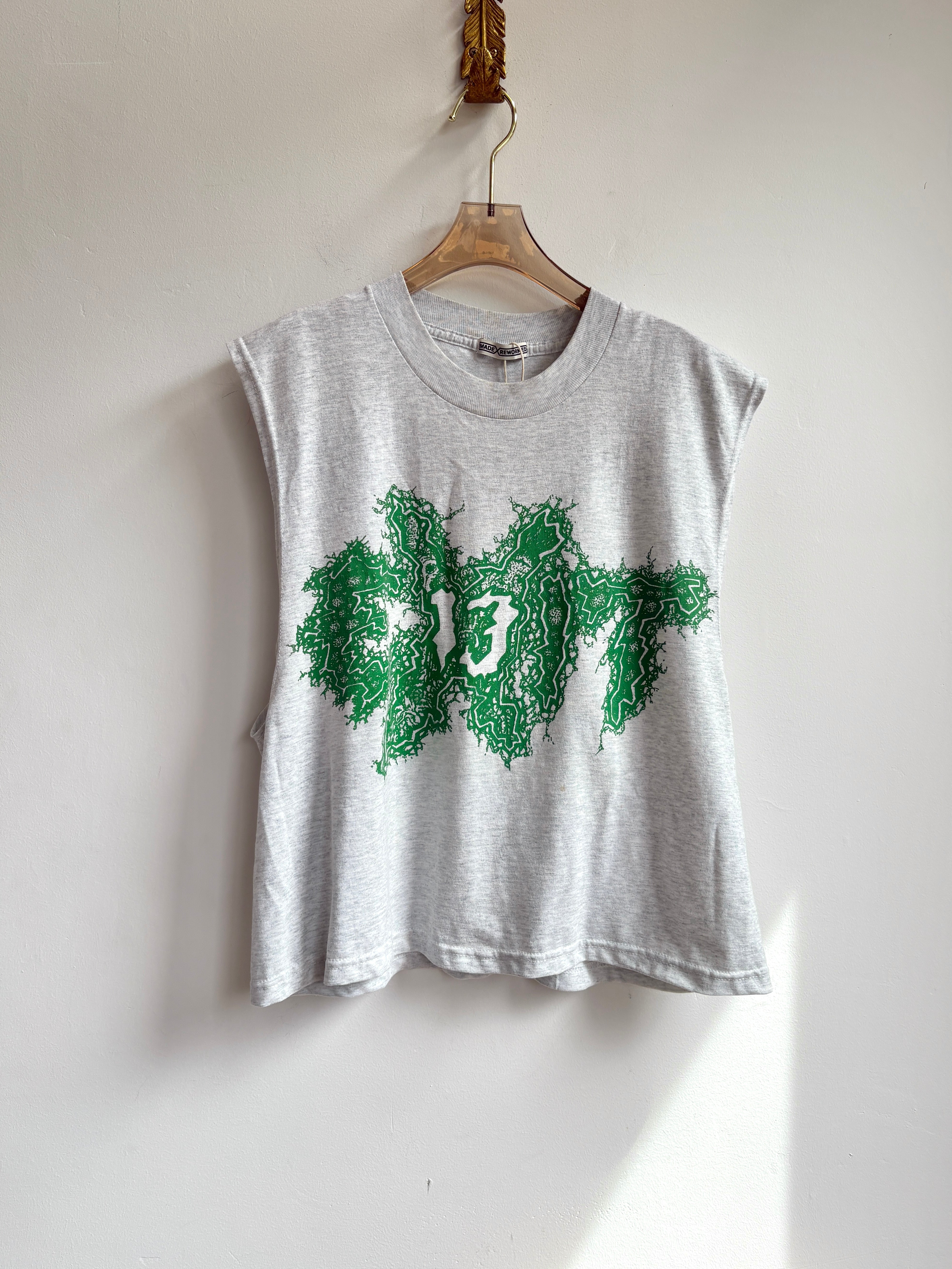 - Vintage graphic t-shirt reworked into cropped sleeveless muscle tee/tank top