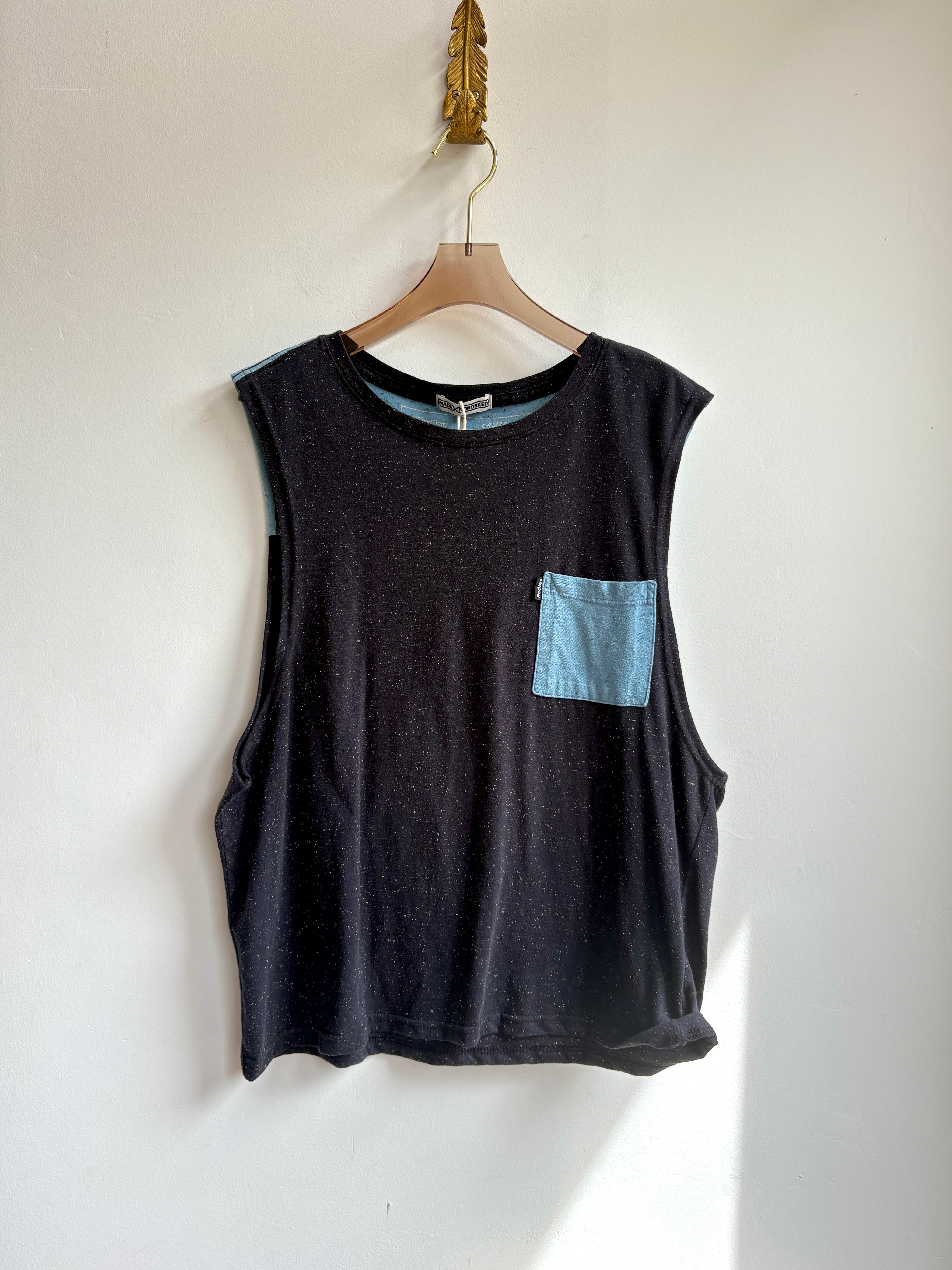 Cropped Grey & Sky Blue Sleeveless Tee (Reworked)