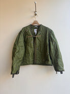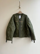 Dark Olive Green Army Liner Quilted Coat w/ Silver Grommets & Clasp (Reworked)