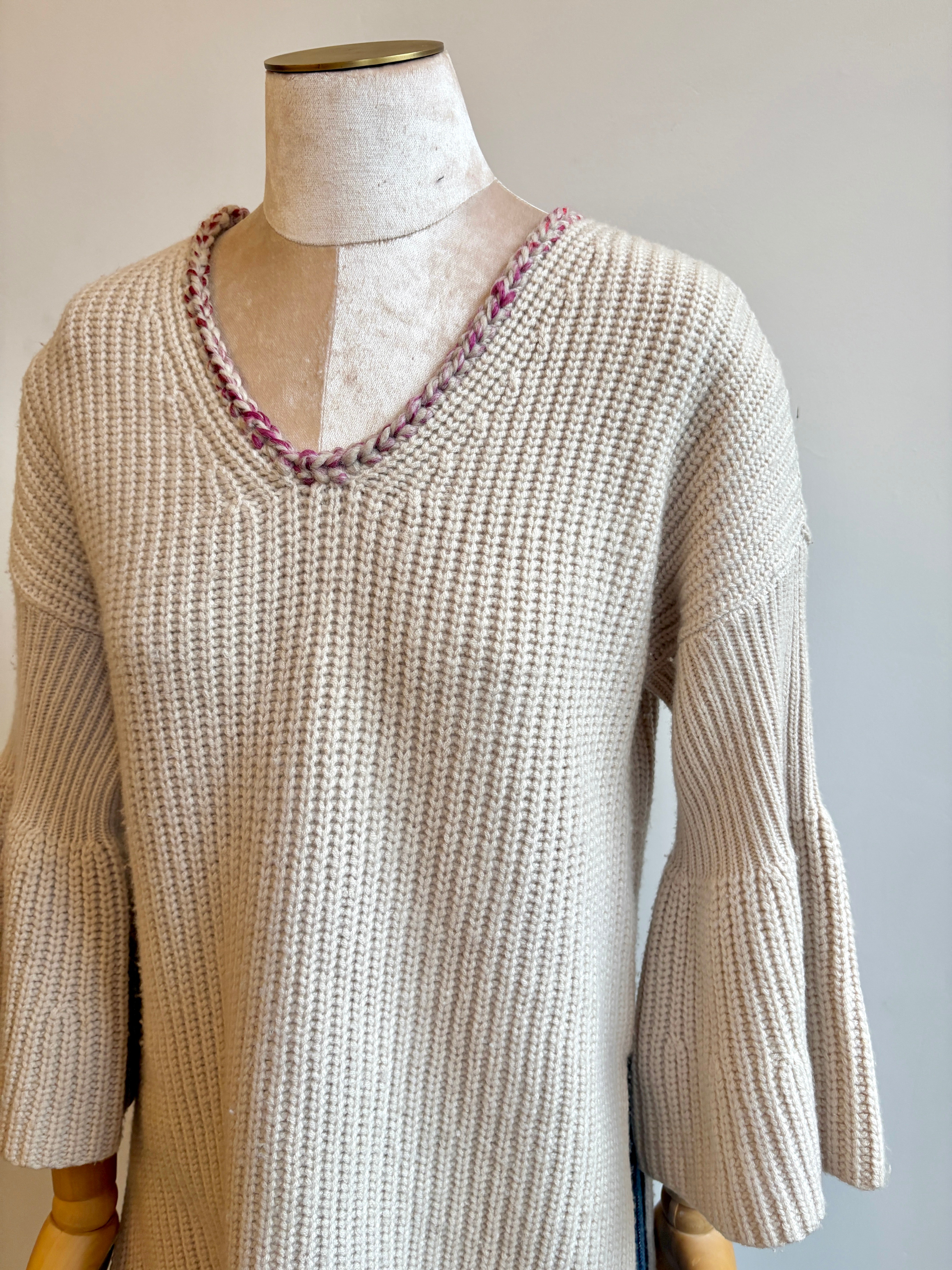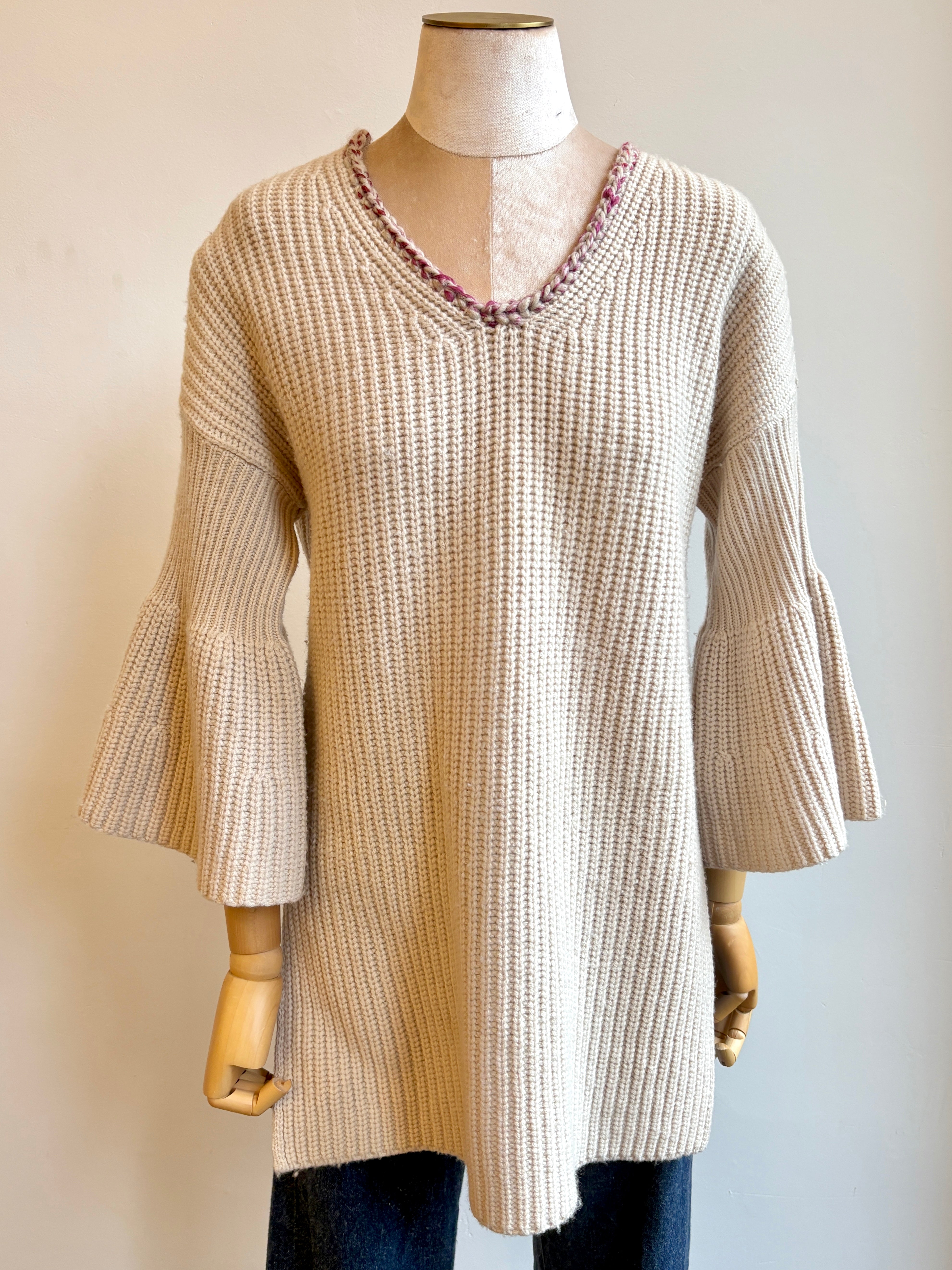 Cream Knit w/ Ruffle Sleeve & Decorative Neckline (Reworked)