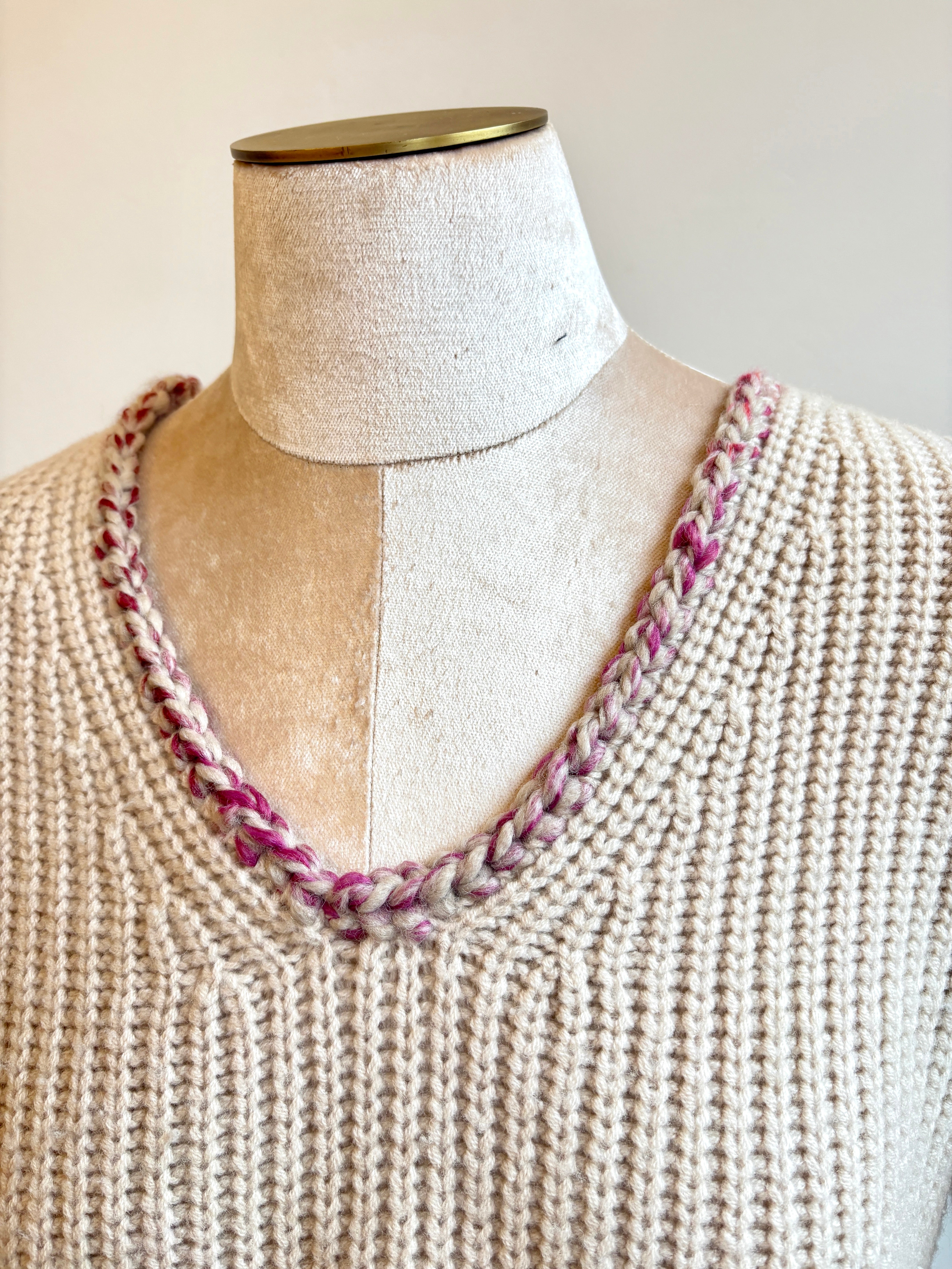 - Knitted accent neckline in colors cream/pink