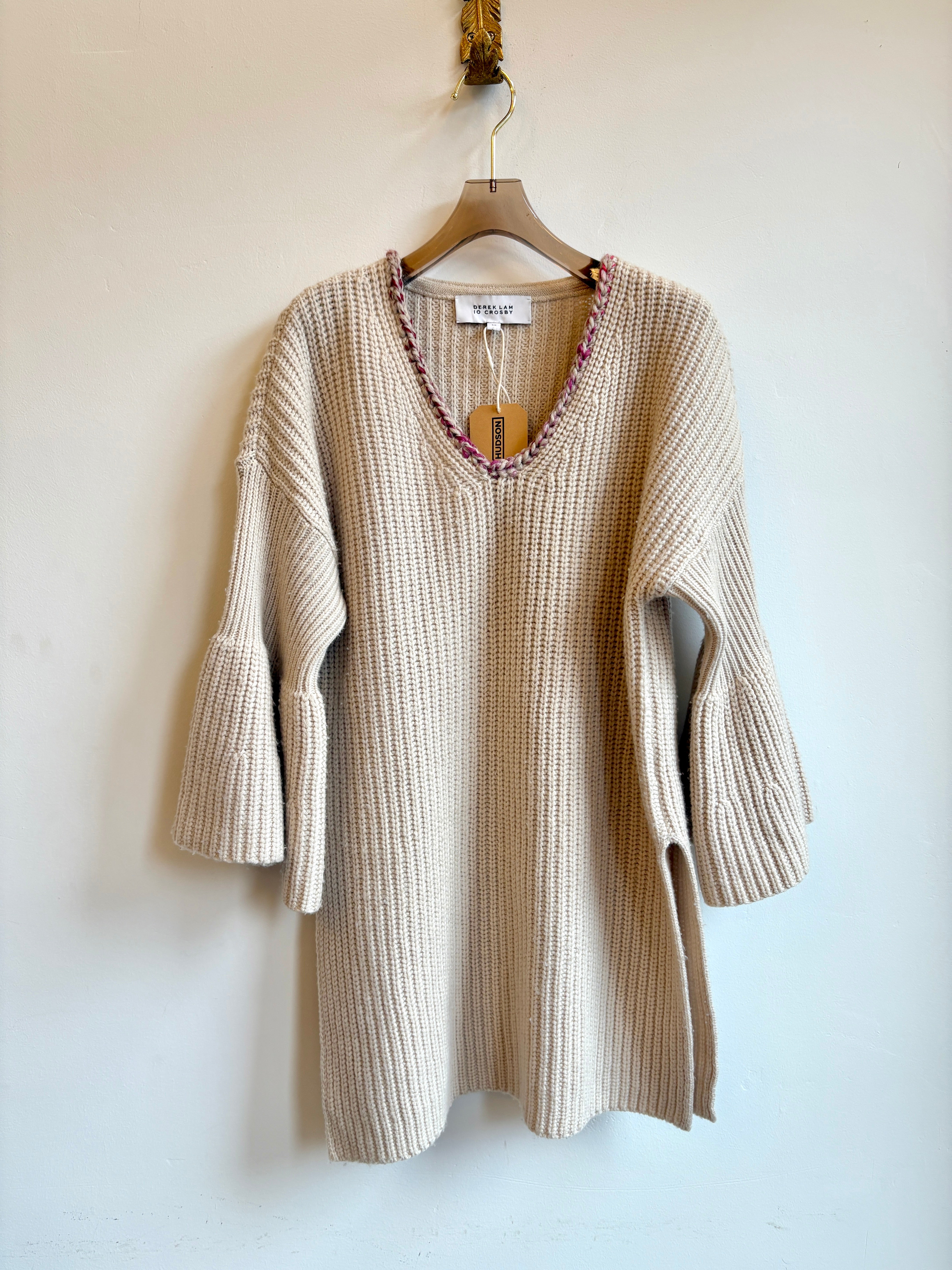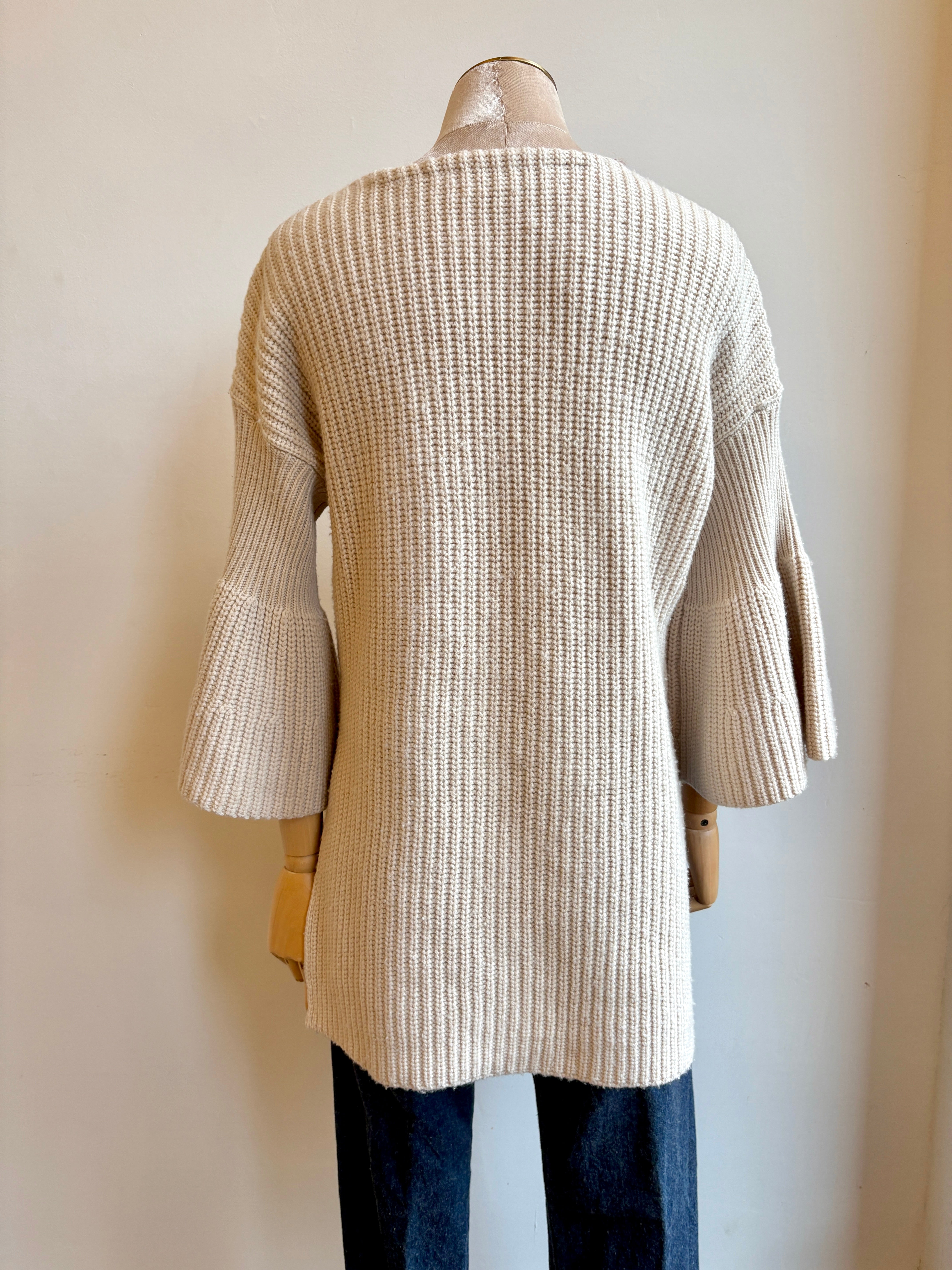 - Derek Lam Cream Knit Sweater w/ Ruffle Sleeve