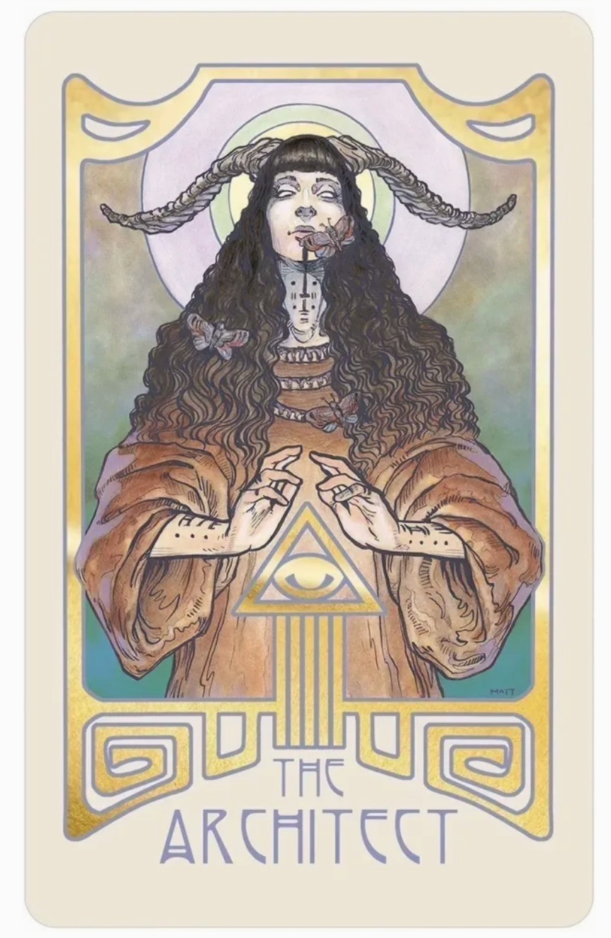 Dreamscape Oracle Deck by Matt Hughes presents 32 guides, some animal messengers, some mythological archetypes, to help us explore the liminal space in our lives. This deck can be used as a stand-alone, divination deck, or as a companion to the Ethereal Visions Tarot. In his iconic art nouveau style, these are spell binding invitation into the subconscious, where we see the unseen and comprehend the incomprehensible.