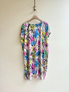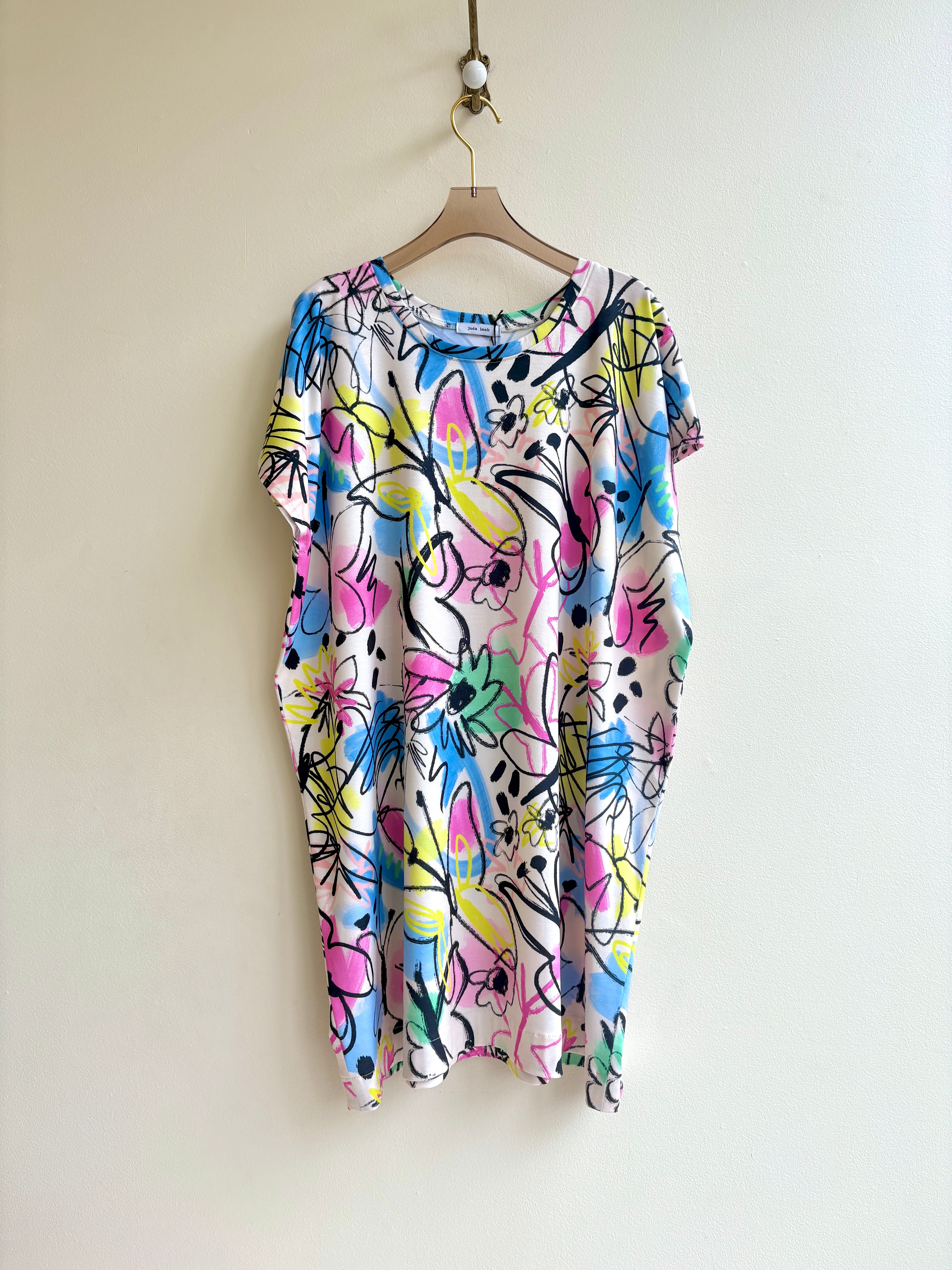 The easiest dress you'll ever wear. A boxy, drapey cut handmade in a soft, silky poly-blend jersey material custom printed from Spoonflower. Versatile and oh so comfortable! Wear loose, belt it, with tights and boots in the Fall, it does it all.