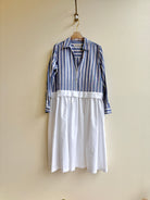 Empire Shirtwaist Dress in Blue Faded Rainbow Stripe & White (Reworked)