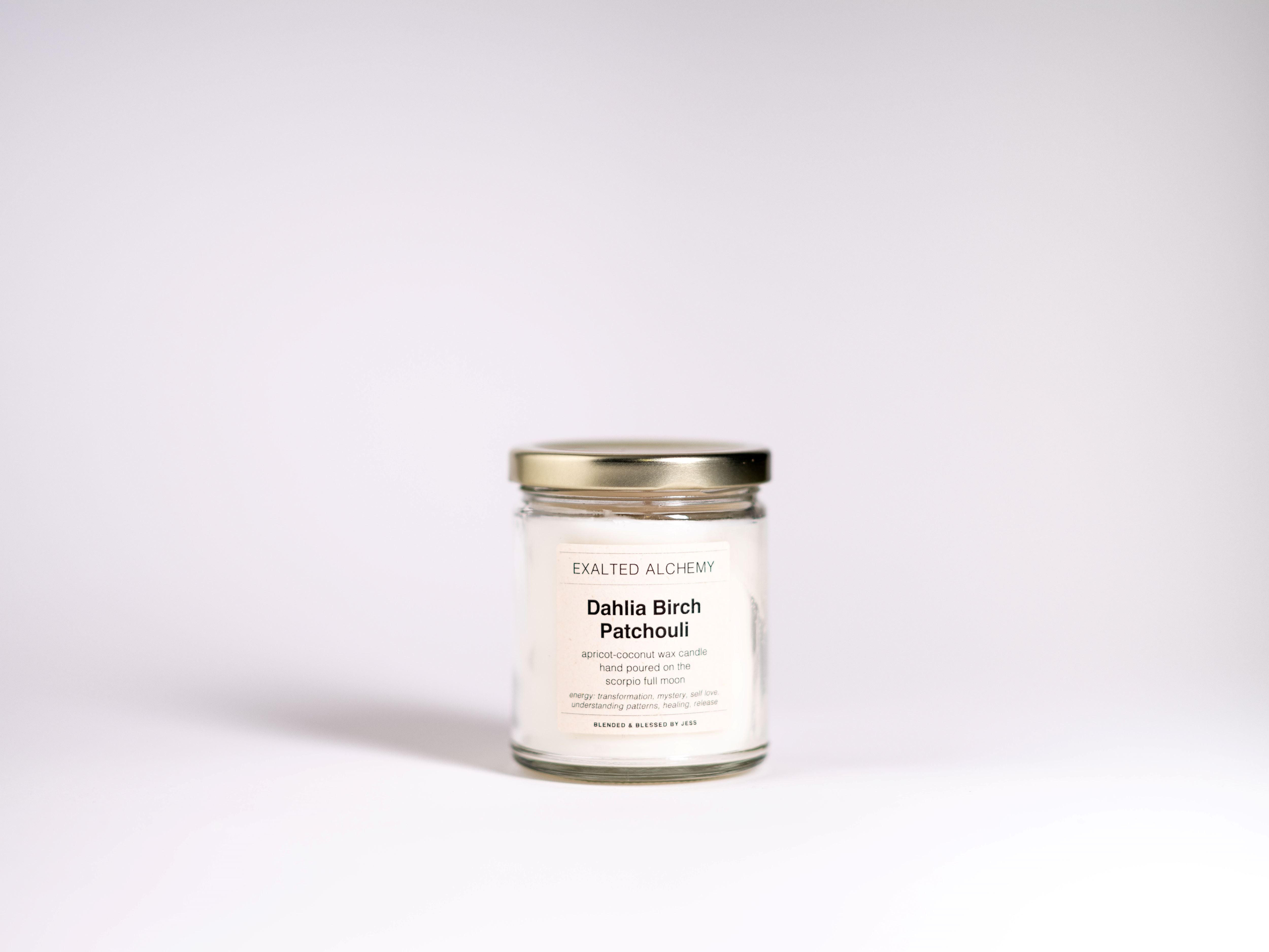 Exalted Alchemy Dahlia Birch Patchouli Candle