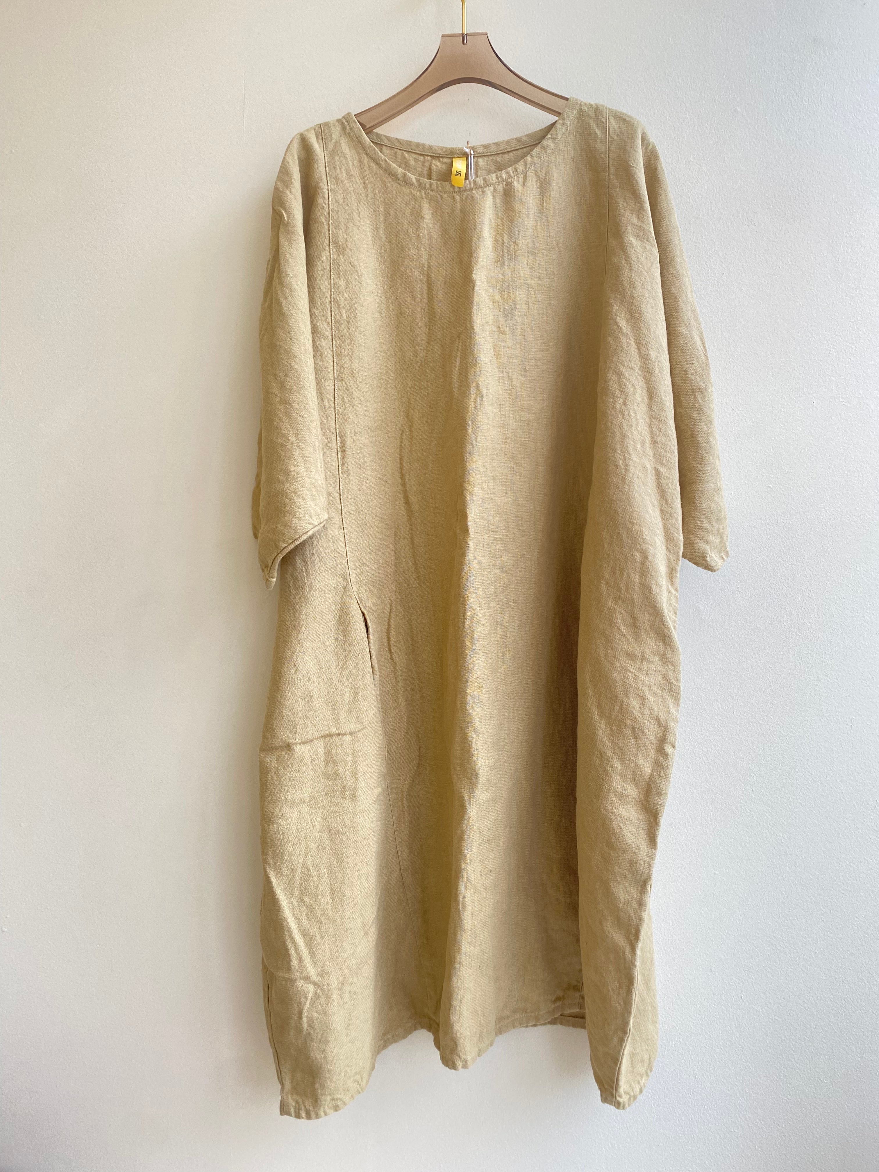 Brosgé’s Gallery Dress in linen is the ideal garment on a hot day, when you want to throw on something easy that will keep you looking and feeling cool. Its shaped center panel features two generous pockets, and a narrowed hem emphasizes the lovely cocoon shape. Pre-washed and dried to minimize shrinkage. Handmade in Schenectady.