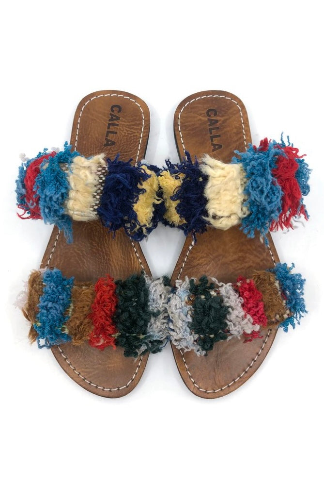 The CALLA Hali Sandal is a 2 strap sandal made of Boucharouite rug. The plush rug wraps around the interior making them the softest and most comfortable sandals ever! They suit all types of feet.