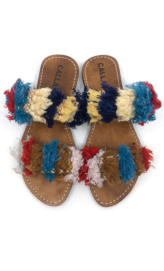 The CALLA Hali Sandal is a 2 strap sandal made of Boucharouite rug. The plush rug wraps around the interior making them the softest and most comfortable sandals ever! They suit all types of feet.
